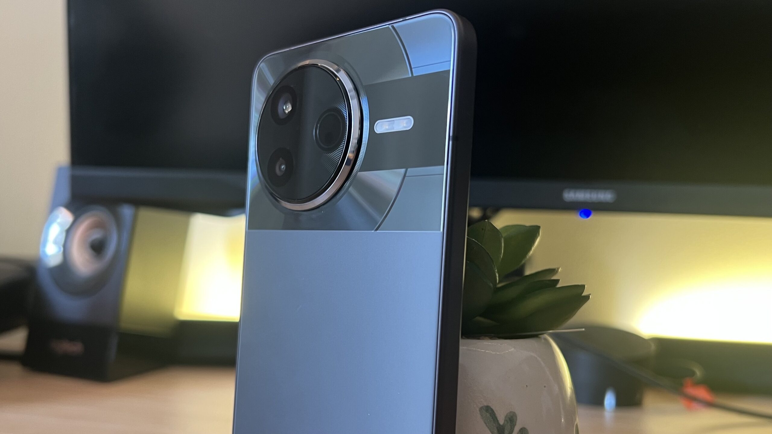 Η πίσω πλευρά είναι επίπεδη αλλά άνετη. Σε σύγκριση με τις σκληρές γωνίες του RedMagic 9S Pro, το Poco F7 Pro έχει στρογγυλεμένη σχεδίαση που είναι πιο φιλική για τα χέρια. Η γυάλινη επιφάνεια στην κορυφή έχει κυκλικό σχέδιο κάτω από το γυαλί, προσθέτοντας βάθος.