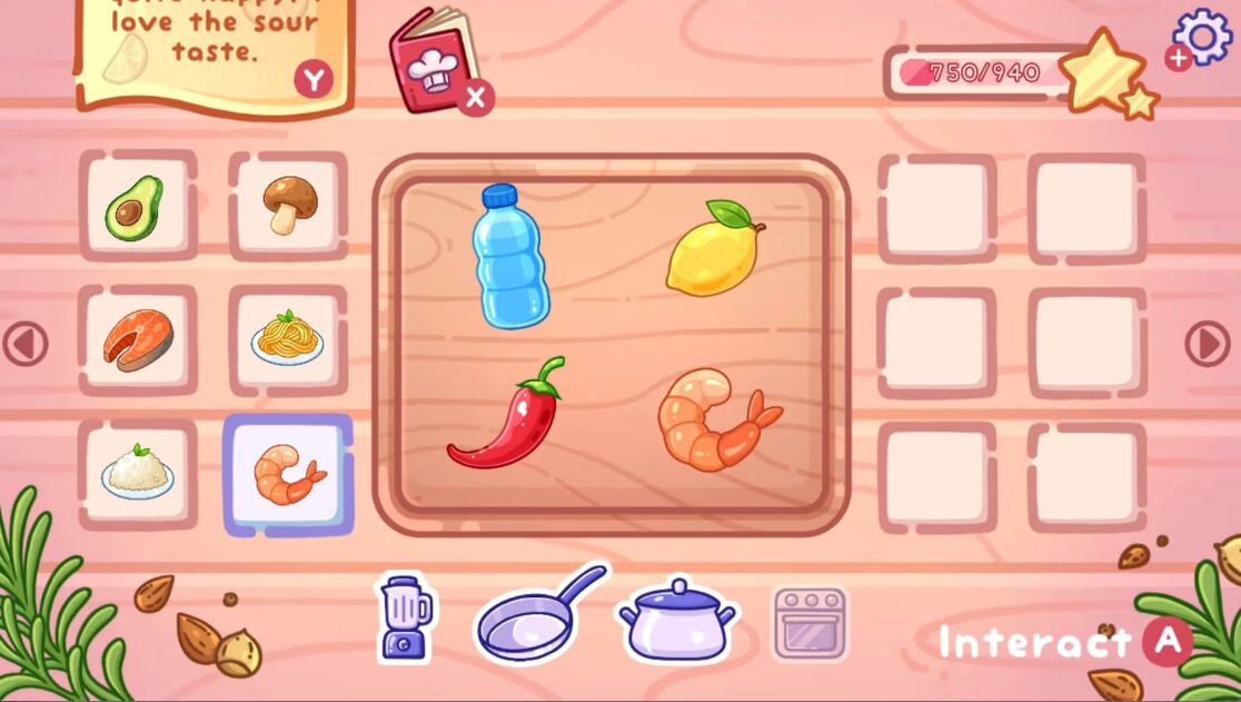 Στο βιβλίο συνταγών εμφανίζονται τα περιγράμματα νέων συνταγών που δεν έχεις ανακαλύψει ακόμα. Στη συνέχεια, πηγαίνεις στην κουζίνα, διαλέγεις τα υλικά που θέλεις και αποφασίζεις πώς θα τα ετοιμάσεις (π.χ. με το μπλέντερ). Το φαγητό ετοιμάζεται και σερβίρεται. Όταν ξεκλειδώνεις κάτι καινούργιο, το βλέπεις και κερδίζεις XP, που σου επιτρέπει να ξεκλειδώνεις περισσότερα υλικά και τρόπους μαγειρέματος.