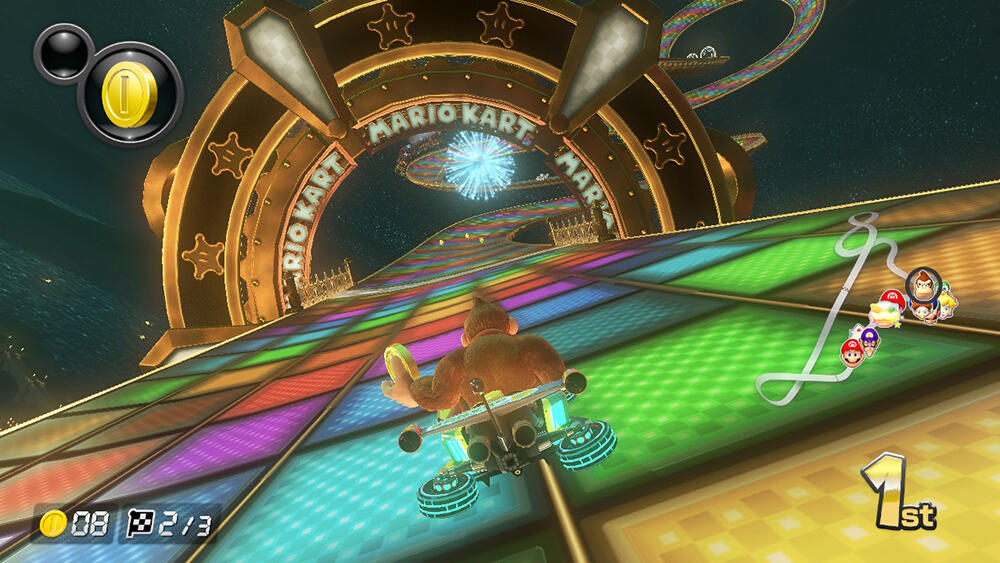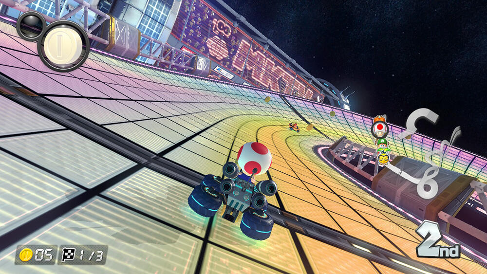 Η πιο πρόσφατη Rainbow Road ξεχωρίζει με τον σχεδιασμό της που θυμίζει διαστημικό σταθμό, πολυεπίπεδες διαδρομές και έντονη χρήση της αντιβαρύτητας. Το οπτικό αποτέλεσμα με τα LED χρώματα είναι εντυπωσιακό.