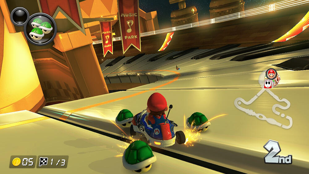 Το Music Park είναι μια φανταστική τοποθεσία όπου τρέχεις πάνω σε πλήκτρα πιάνου και ξυλόφωνου, αποφεύγεις μουσικές νότες και πηδάς πάνω σε τύμπανα. Μια πίστα γεμάτη δημιουργικότητα που αξιοποιεί πλήρως το θέμα της.