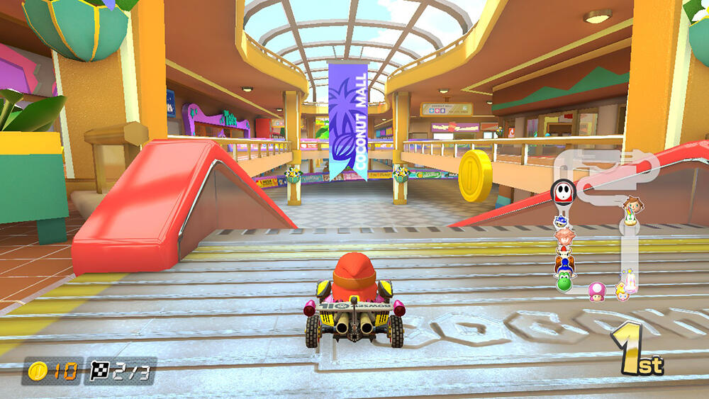Το Coconut Mall είναι μια πίστα που αξιοποιεί στο έπακρο το απλό της θέμα. Οι κυλιόμενες σκάλες, τα ευρύχωρα περάσματα και η έξοδος στο πάρκινγκ δημιουργούν μια ζωντανή εμπειρία.