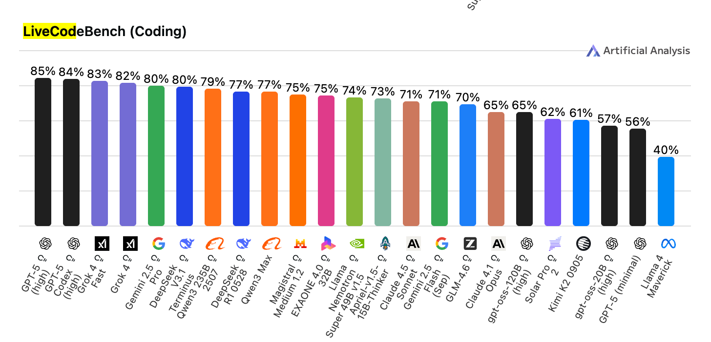 Στον προγραμματισμό, το Llama ενδέχεται να παράγει σφάλματα ή μη ασφαλή κώδικα. Σε δοκιμές, το Llama 4 Maverick πέτυχε σκορ 40% σε διαγωνισμούς προγραμματισμού, έναντι 85% για το GPT-5 high και 83% για το Grok 4 Fast. Είναι σημαντικό κάθε κώδικας που παράγεται από AI να ελέγχεται από ειδικό πριν χρησιμοποιηθεί.