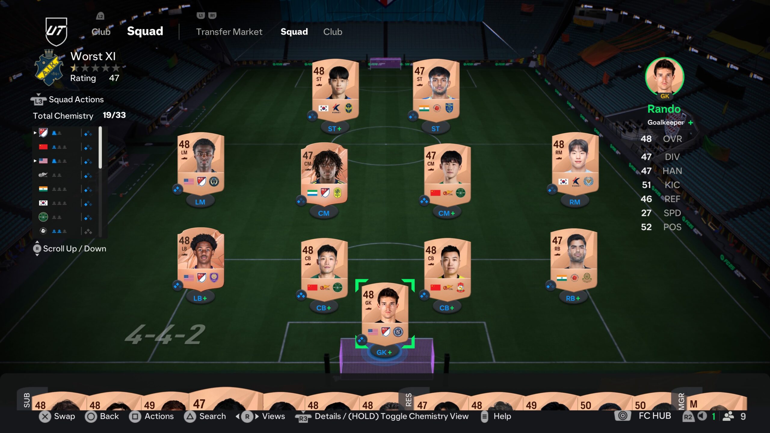 Η λίστα με τους 25 χειρότερους παίκτες προσφέρει τη μεγαλύτερη πρόκληση στο Ultimate Team – αλλά έχει μετατρέψει ορισμένες χάλκινες κάρτες σε cult ήρωες. Ορισμένοι υποστηρίζουν ότι κρατώντας μερικά χαμηλής βαθμολογίας αντικείμενα στον πάγκο σας, κερδίζετε περισσότερους νικηφόρους αγώνες στη Division Rivals και το Weekend League. Είναι απλώς μια θεωρία, αλλά το αποτέλεσμα είναι ότι παίκτες όπως ο 47-βαθμολογίας Jin Haoxiang αξίζουν πολλά στο μεταγραφικό παζάρι. Ακολουθεί η πιο κακή ομάδα που μπορείτε να αγοράσετε, για να σχηματίσετε τη λίστα με τους χειρότερους παίκτες FC 25.