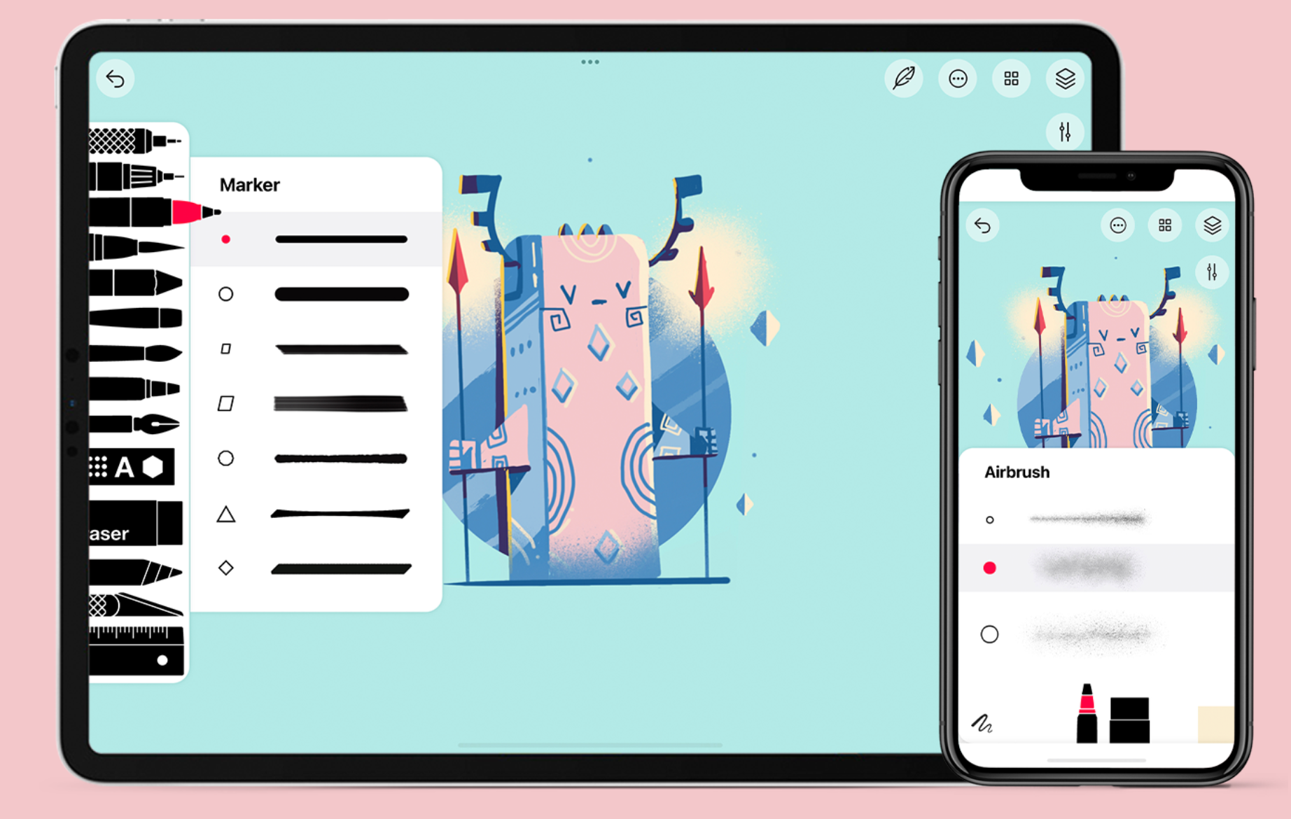 Σας επιτρέπει να δημιουργείτε εικονογραφήσεις, branding, λογότυπα, icons, UI/UX designs, τυπογραφία, αφίσες, ετικέτες, flyers, αυτοκόλλητα, concept art και ψηφιακή τέχνη. Υποστηρίζει το Apple Pencil με ακρίβεια, ευαισθησία στην πίεση και κλίση.