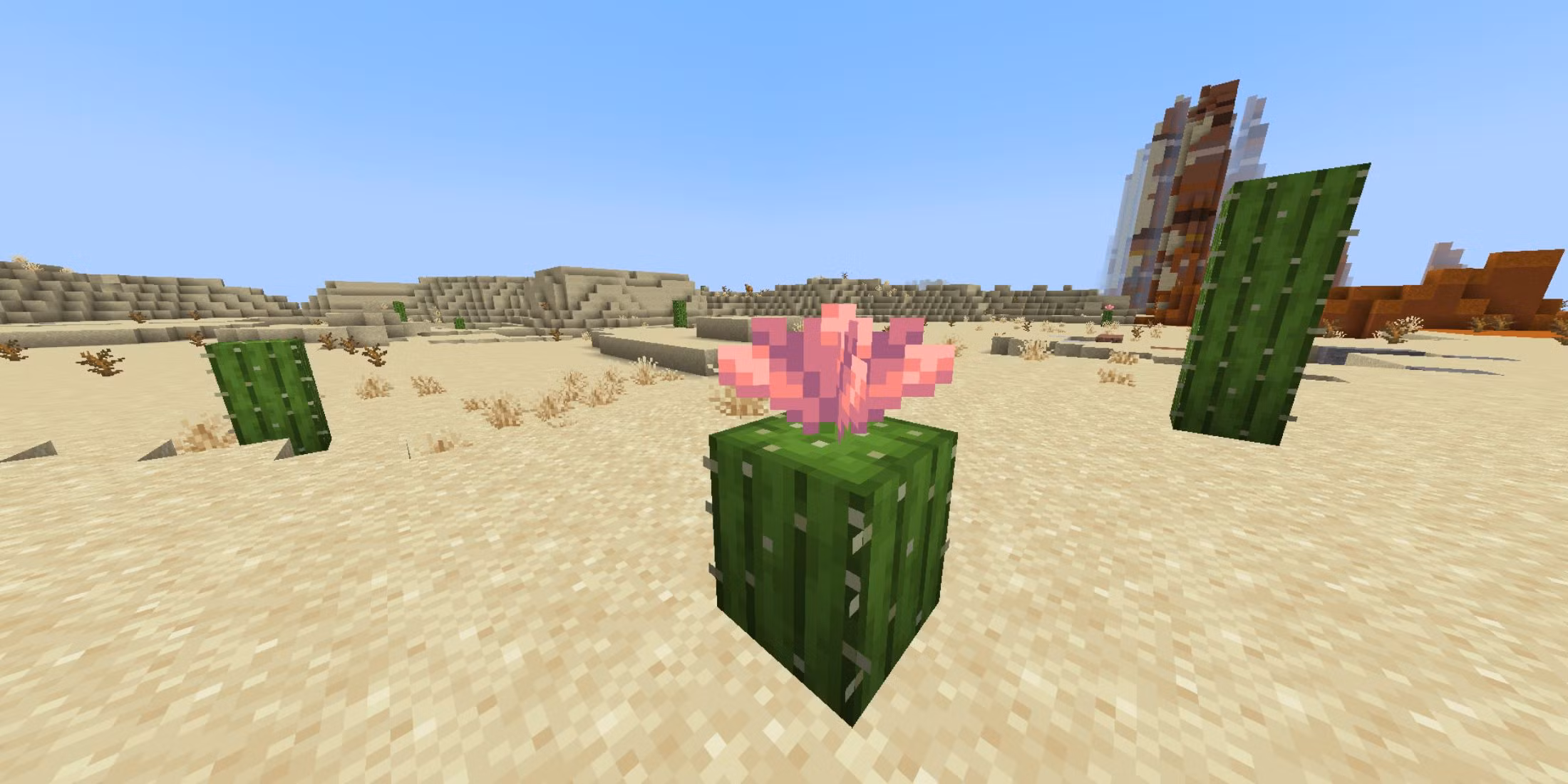 Επιπλέον, οι θαυμαστές του Minecraft θα βρουν πολύ περισσότερους κάκτους να αναπτύσσονται φυσικά στις ερήμους σε σύγκριση με τα τρία βιομά Badlands. Όπως και με το Leaf Litter, μπορείτε να σπάσετε και να συλλέξετε τα Cactus Flowers με το χέρι ή με οποιοδήποτε εργαλείο.