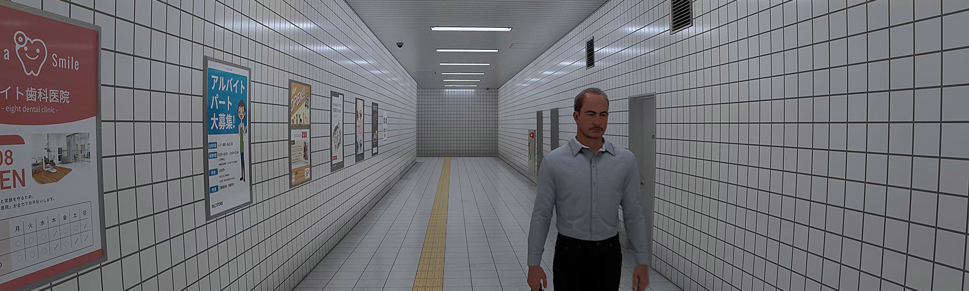 Ο διάδρομος είναι επενδυμένος με λευκά πλακάκια, αφίσες στα αριστερά, μερικές πόρτες στα δεξιά και μια πινακίδα από πάνω που γράφει ‘Exit 8’. Σε κάθε κύκλο, θα δείτε έναν άνδρα να περπατά προς την αντίθετη κατεύθυνση — με χαρτοφύλακα στο ένα χέρι και κινητό στο άλλο. Είναι σημαντικό να προσέχετε τέτοιες λεπτομέρειες, καθώς οι ανωμαλίες μπορεί να είναι είτε πολύ εμφανείς είτε εξαιρετικά δύσκολες να εντοπιστούν.