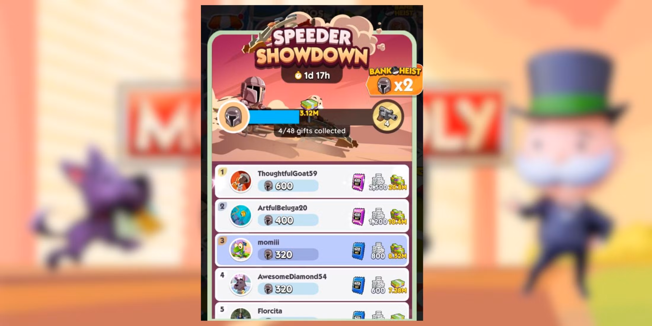 Ανταμοιβές Κατάταξης του Speeder Showdown στο Monopoly GO