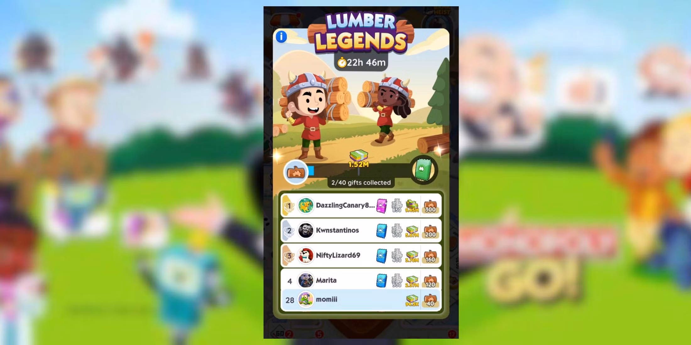 Μετά τον διαγωνισμό Horned Harmony, το Monopoly GO παρουσίασε τον νέο διαγωνισμό Lumber Legends. Ξεκίνησε στις 25 Απριλίου και θα διαρκέσει μία ημέρα.