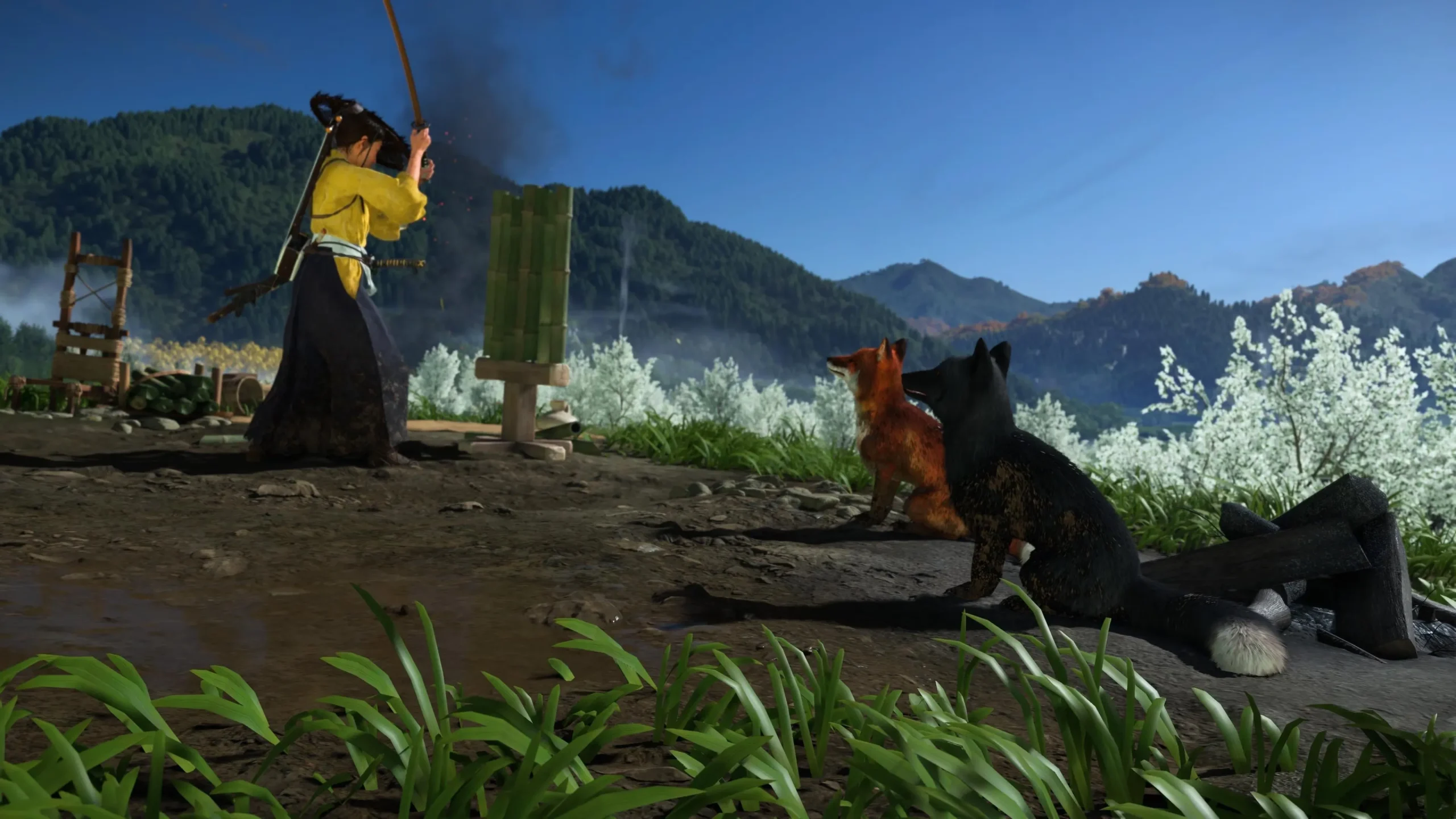 Ο ανοιχτός κόσμος του Ghost of Yōtei προσφέρει πληθώρα προαιρετικών δραστηριοτήτων που πραγματικά αξίζουν τον χρόνο σου. Τα στρατόπεδα ληστών σου δίνουν την ευκαιρία να εξασκήσεις τις ικανότητές σου στη μυστικότητα και τη μάχη, μακριά από τις απαιτητικές αποστολές της ιστορίας. Τα ιερά προσφέρουν προκλήσεις πλατφόρμας, παρόμοιες με το Uncharted, που οδηγούν σε χρήσιμες ανταμοιβές. Εντοπίζοντας και απολαμβάνοντας τα σπάνια θερμά λουτρά, αυξάνεις τη συνολική υγεία σου. Προσωπικά, έχω αφιερώσει πολύ χρόνο αναζητώντας τα bamboo strikes του παιχνιδιού, όχι τόσο για το στατιστικό όφελος που προσφέρουν, αλλά για έναν πολύ πιο σημαντικό λόγο: Κοίτα αυτά τα μικρά πλάσματα!
