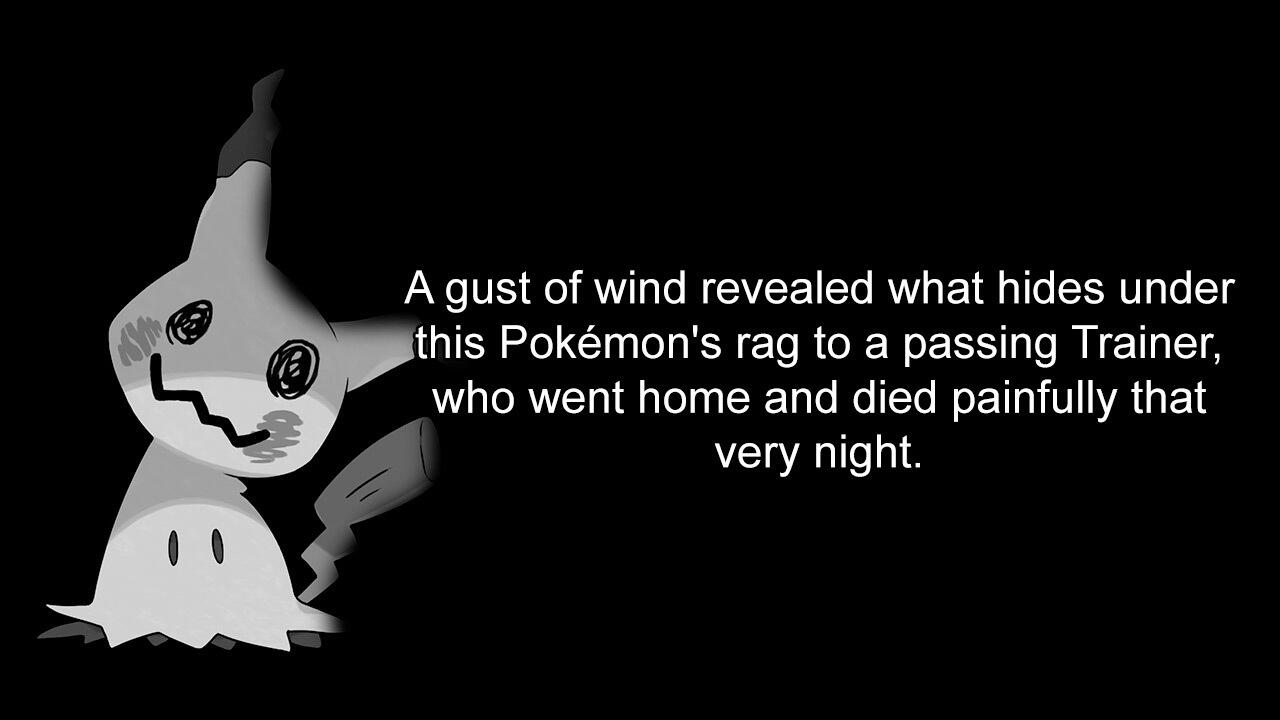 Σύμφωνα με μακάβριες αναφορές, το μόνο που κρύβει το Mimikyu κάτω από το κάλυμμά του είναι πόνος και δυστυχία.