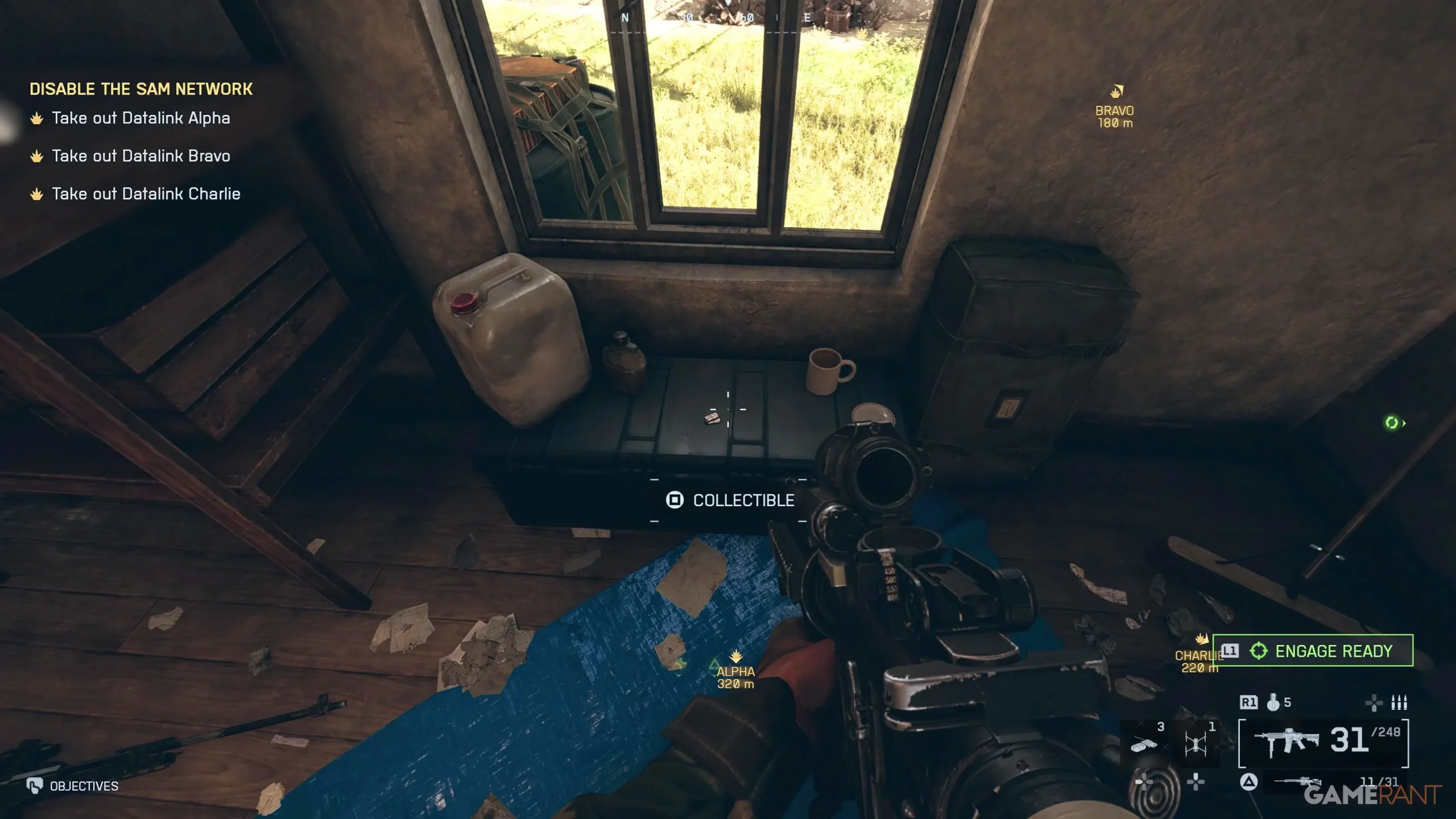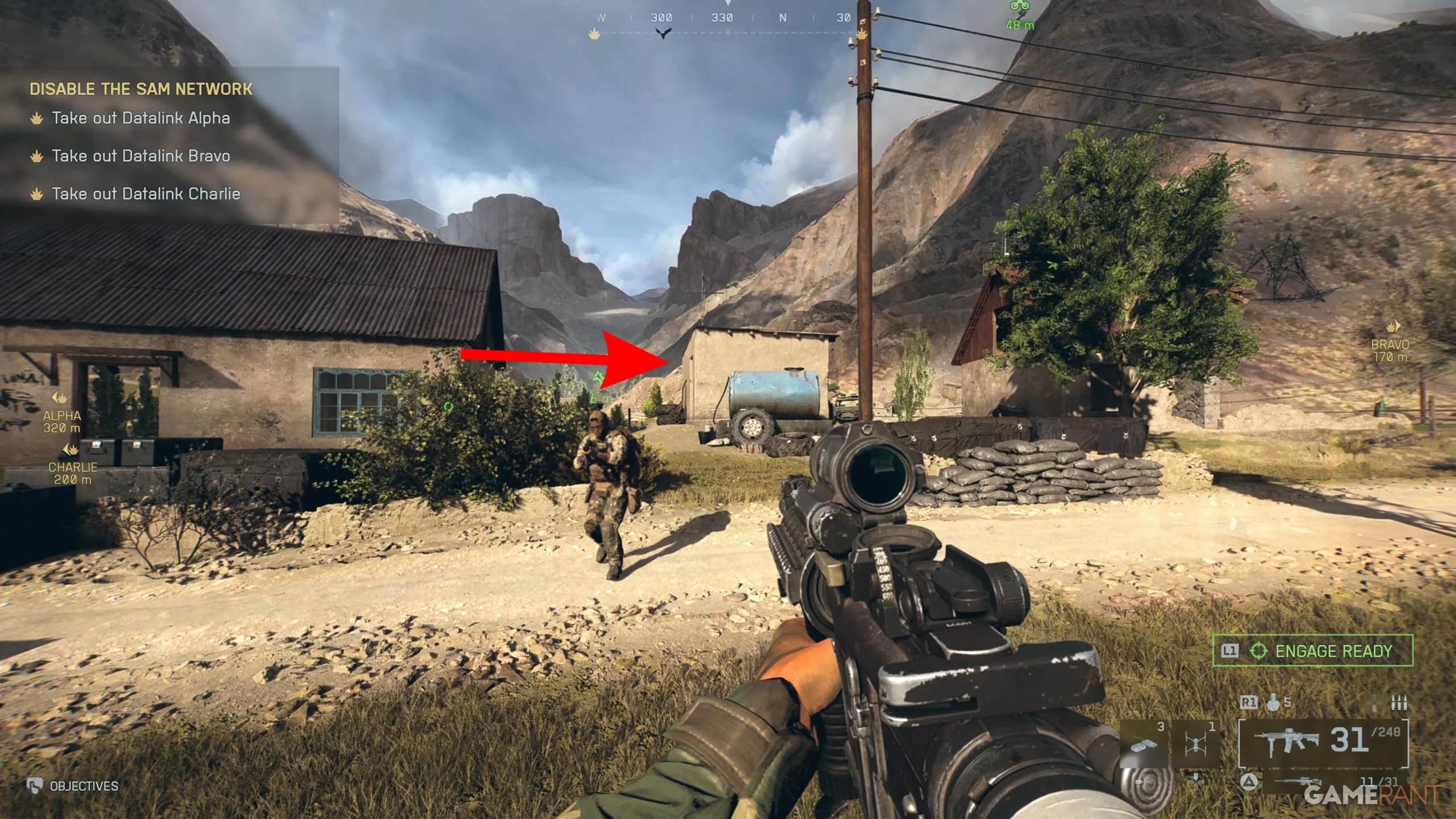 Συνεχίστε την αποστολή μέχρι να συναντήσετε τον εχθρό Sniper. Το επόμενο βήμα θα είναι να “εξουδετερώσετε τις ενισχύσεις (Απενεργοποίηση του SAM Network)”, χρησιμοποιώντας για δεύτερη φορά το Switchblade για να αντιμετωπίσετε τα δύο ελικόπτερα και τα τεθωρακισμένα οχήματα. Μόλις τελειώσετε, μην ακολουθήσετε τον κύριο δρόμο· αντ’ αυτού, κινηθείτε αριστερά και ανεβείτε το λόφο, στο σημείο όπου βρισκόταν ο sniper, για να βρείτε το dog tag.