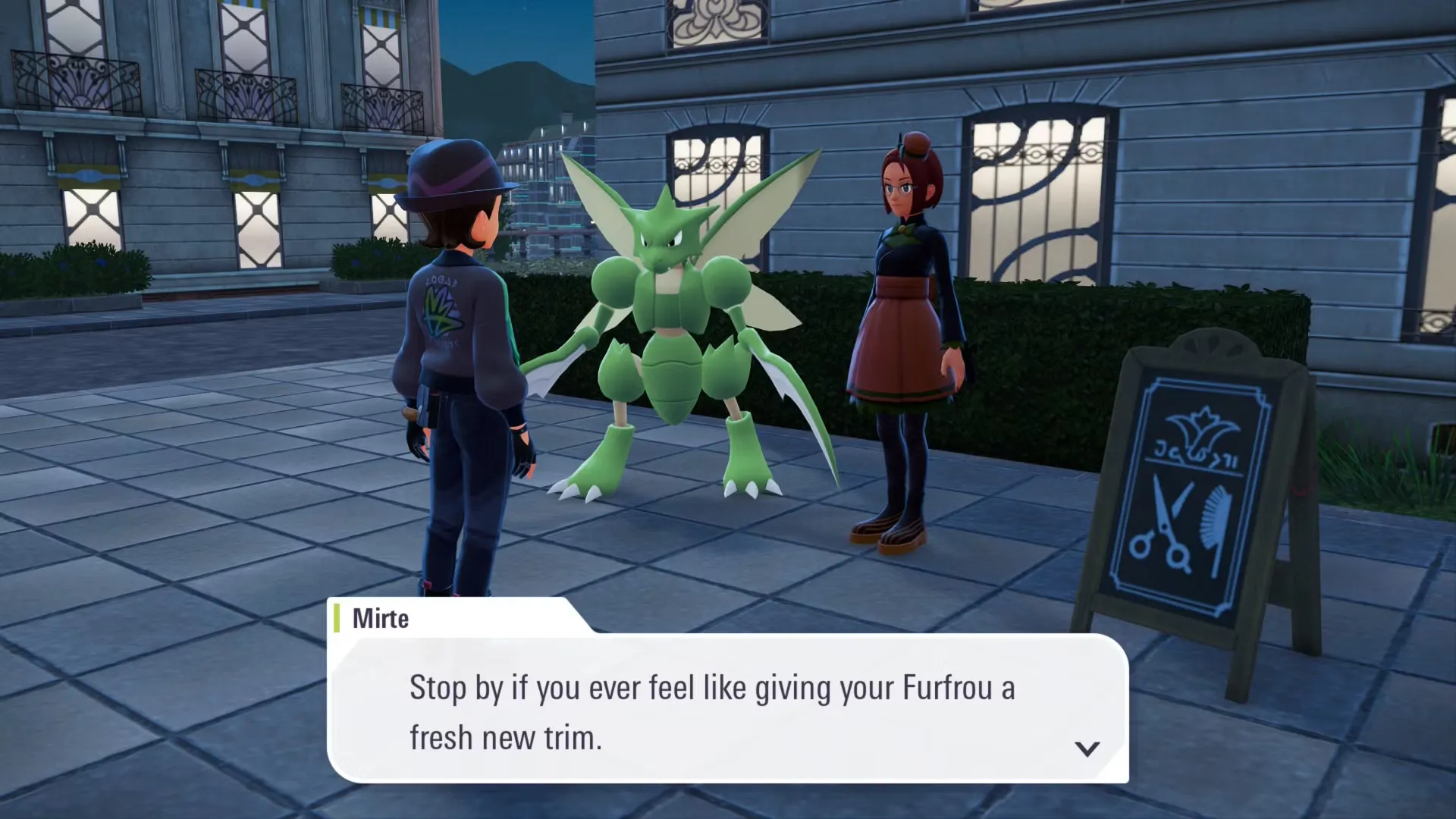 Εκεί θα βρείτε μια NPC με το σχετικό Side Mission. Πλησιάστε την για να τη βοηθήσετε να γίνει Furfrou Trimmer. Ο στόχος της αποστολής είναι να μάθει το Scyther της την κίνηση Slash. Αν έχετε επιλέξει το Feraligatr ως αρχικό Pokemon, η διαδικασία θα είναι ιδιαίτερα εύκολη.