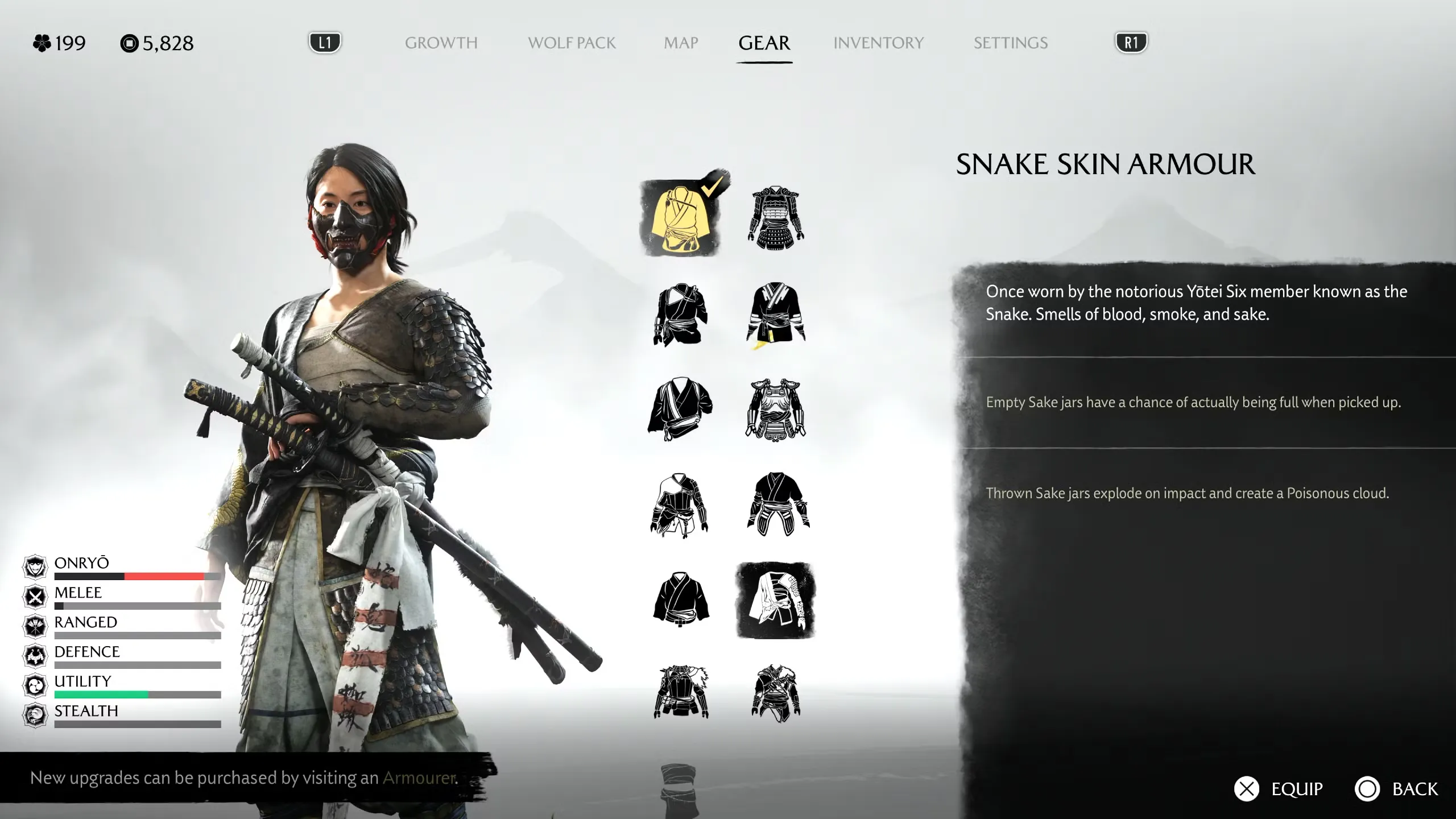 Το Snake Skin Armor περιλαμβάνεται στην Deluxe Edition του Ghost of Yotei και δεν μπορεί να αναβαθμιστεί.