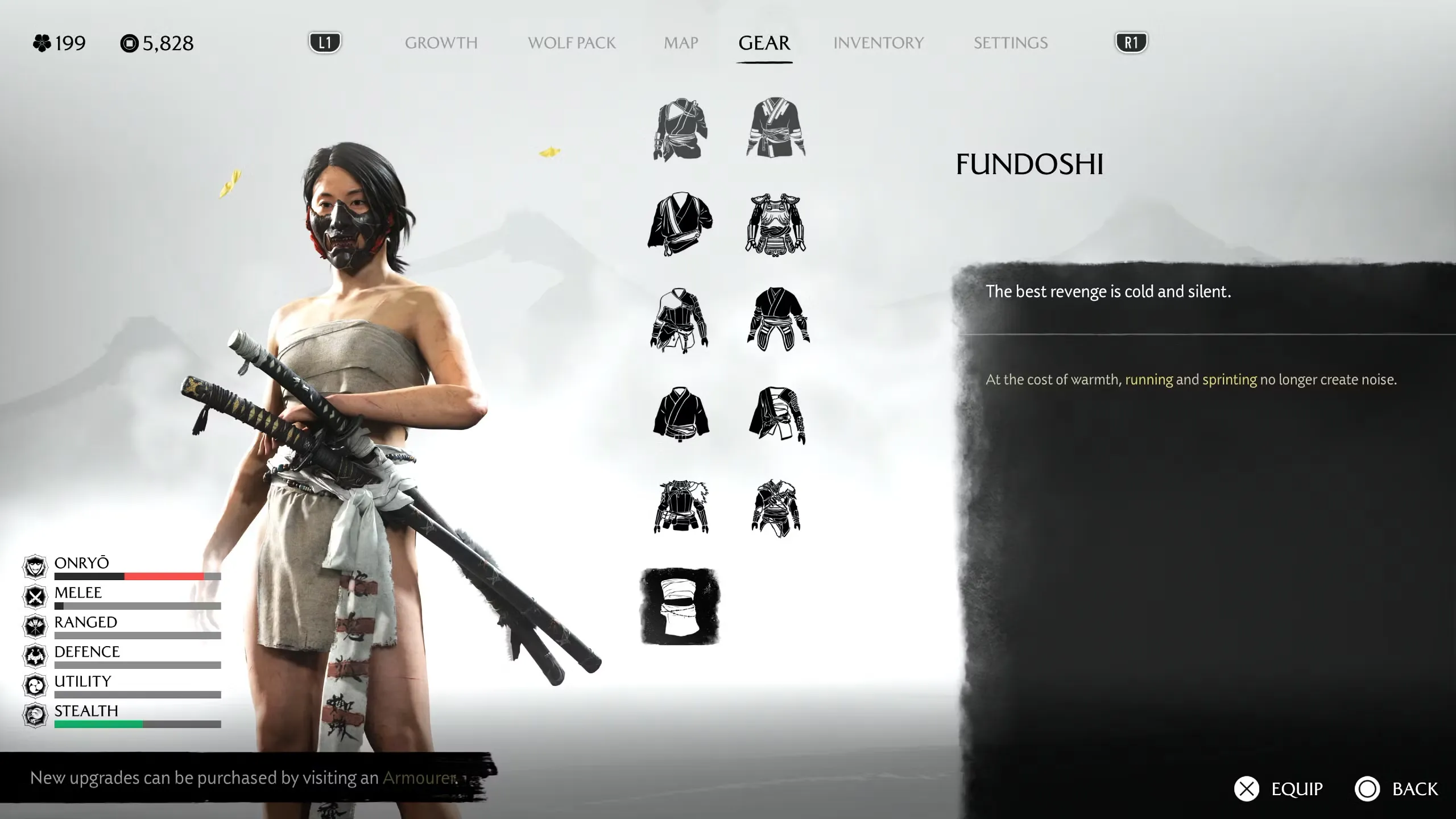 Το Fundoshi δίνεται ως ανταμοιβή αφού ξεκουραστείτε και στα δεκαοκτώ θερμά λουτρά του Ghost of Yotei. Δεν μπορεί να αναβαθμιστεί.