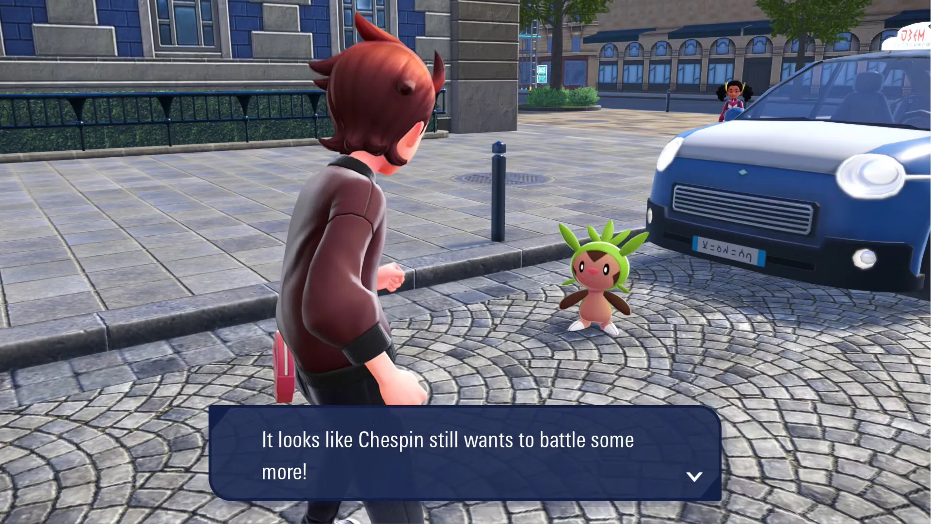 Αφού το νικήσετε για τρίτη φορά, θα προσπαθήσει να σας επιτεθεί ξανά, αλλά ο οδηγός ταξί θα προτείνει να το πάρετε στην ομάδα σας για να ικανοποιήσει το μαχητικό του πνεύμα. Αν συμφωνήσετε, ολοκληρώνετε την αποστολή και το Chespin προστίθεται στην ομάδα σας στο Pokemon Legends Z-A.