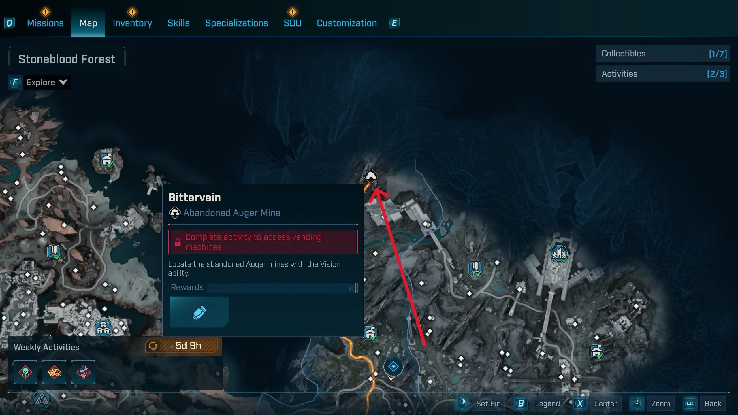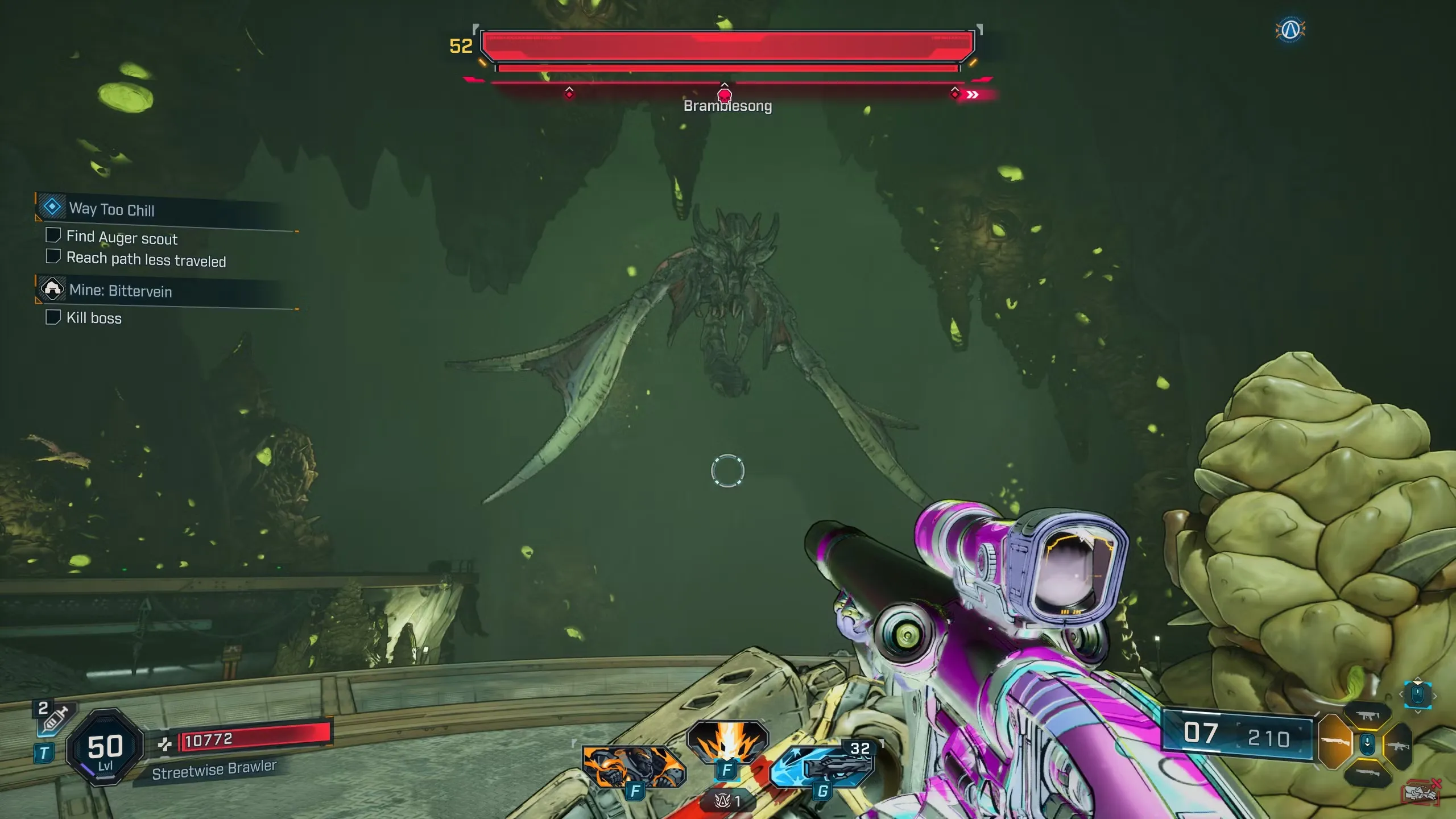 Οι παίκτες πρέπει να κατευθυνθούν στο Stoneblood Forest, στην περιοχή Terminus Range, και να βρουν το Bittervein Abandoned Auger Mine στο βόρειο τμήμα. Εκεί, βαθιά μέσα στο ορυχείο, βρίσκεται το boss Bramblesong, ένα τεράστιο kratch με κόκκινη ζωή. Όπλα μεγάλης εμβέλειας και φωτιάς είναι ιδανικά για αυτή τη μάχη.