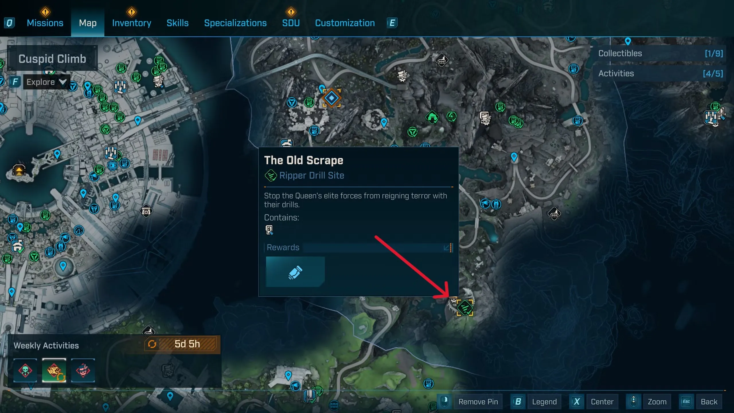 Στο Cuspid Climb, στο The Old Scrape, ένα Ripper Drill Site του Terminus Range, οι παίκτες μπορούν να καλέσουν τον Boneface και τον Saddleback βοηθό του. Ο Boneface είναι δύσκολος αντίπαλος με το IMMORTAL wildcard, οπότε χρησιμοποιήστε shock και incendiary πυρομαχικά.