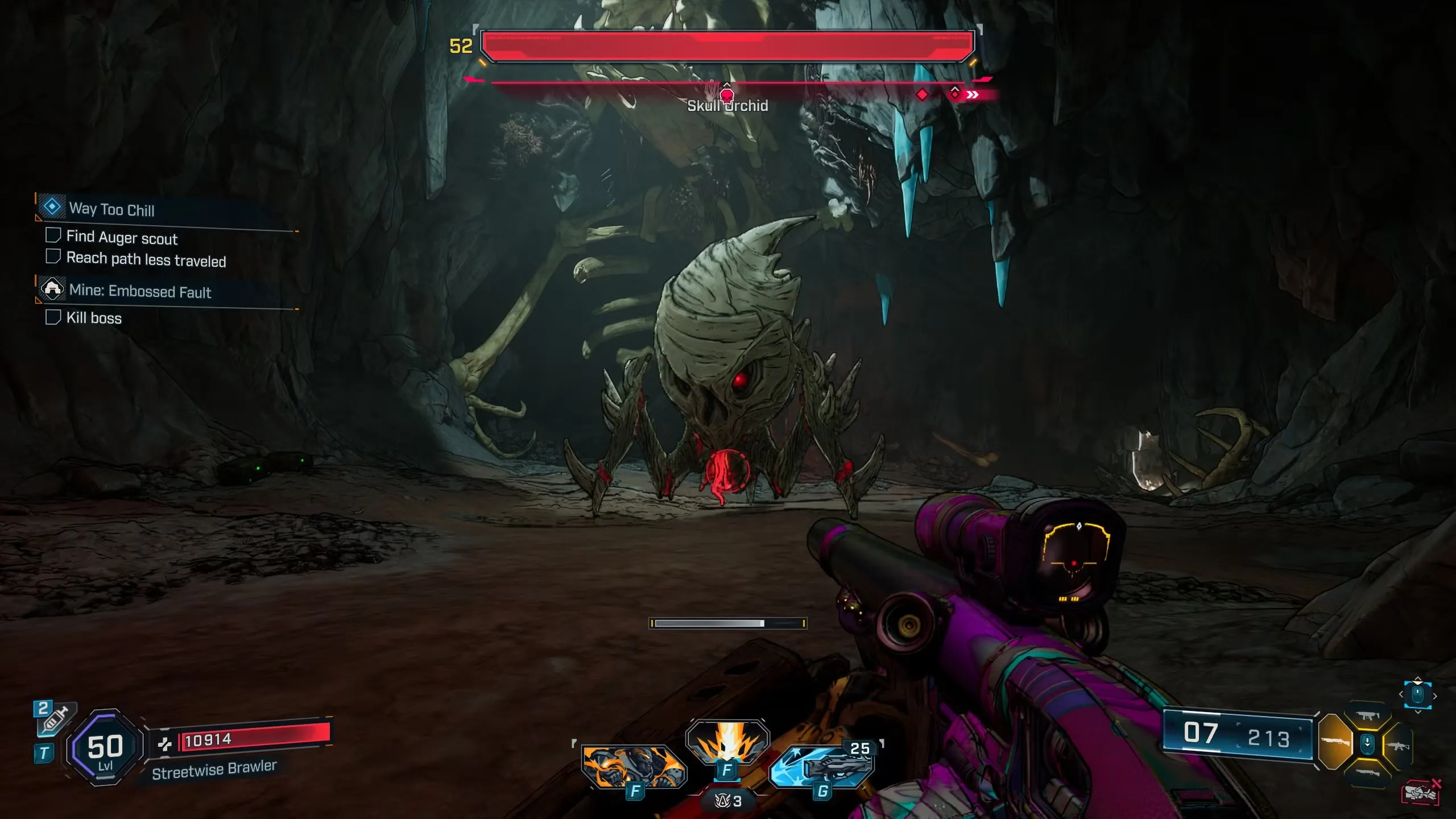 Στο Embossed Fault Auger Mine του Grindstone of the Worthy, στην Carcadia Burn, βρίσκεται το Skull Orchid. Αυτό το πλάσμα εξοντώνεται με όπλα φωτιάς, με αδύναμο σημείο τα πλοκάμια του στόματός του.