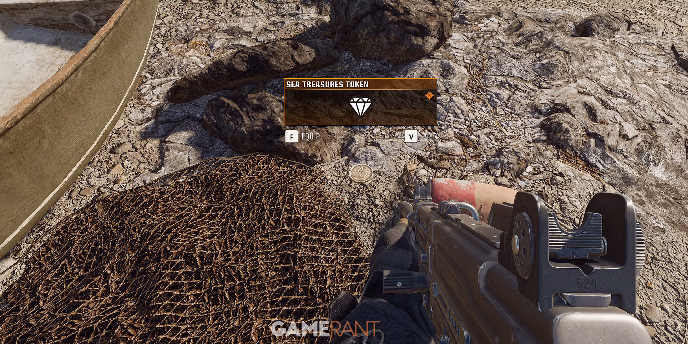 Το πρώτο βήμα για την ολοκλήρωση του Easter Egg Sea Treasures είναι να εντοπίσετε το Sea Treasures Token. Αυτό το δύσκολο να βρεθεί αντικείμενο μπορεί να βρεθεί κατά μήκος της ακτής στην νότια άκρη του χάρτη, ακριβώς κάτω από το σημείο ενδιαφέροντος Hills. Το token έχει μερικές πιθανές τοποθεσίες εμφάνισης, συνήθως κοντά σε ένα από τα πολλά σκάφη που είναι διάσπαρτα κατά μήκος της ακτής, οπότε φροντίστε να ελέγξετε προσεκτικά το καθένα.