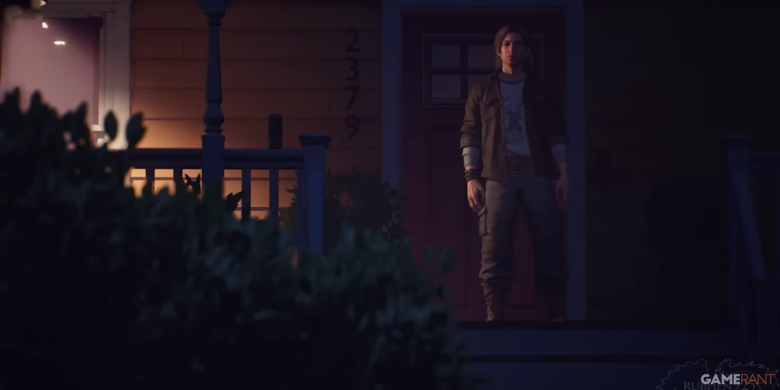 Κατευθυνθείτε προς το κύριο μονοπάτι του σπιτιού και χρησιμοποιήστε το για να πλησιάσετε την βεράντα. Μην ανέβετε τις λευκές σκάλες που οδηγούν στη βεράντα, καθώς ο Corey πρόκειται να βγει ξανά έξω. Αντίθετα, κατευθυνθείτε προς τους θάμνους αριστερά από αυτές τις σκάλες.