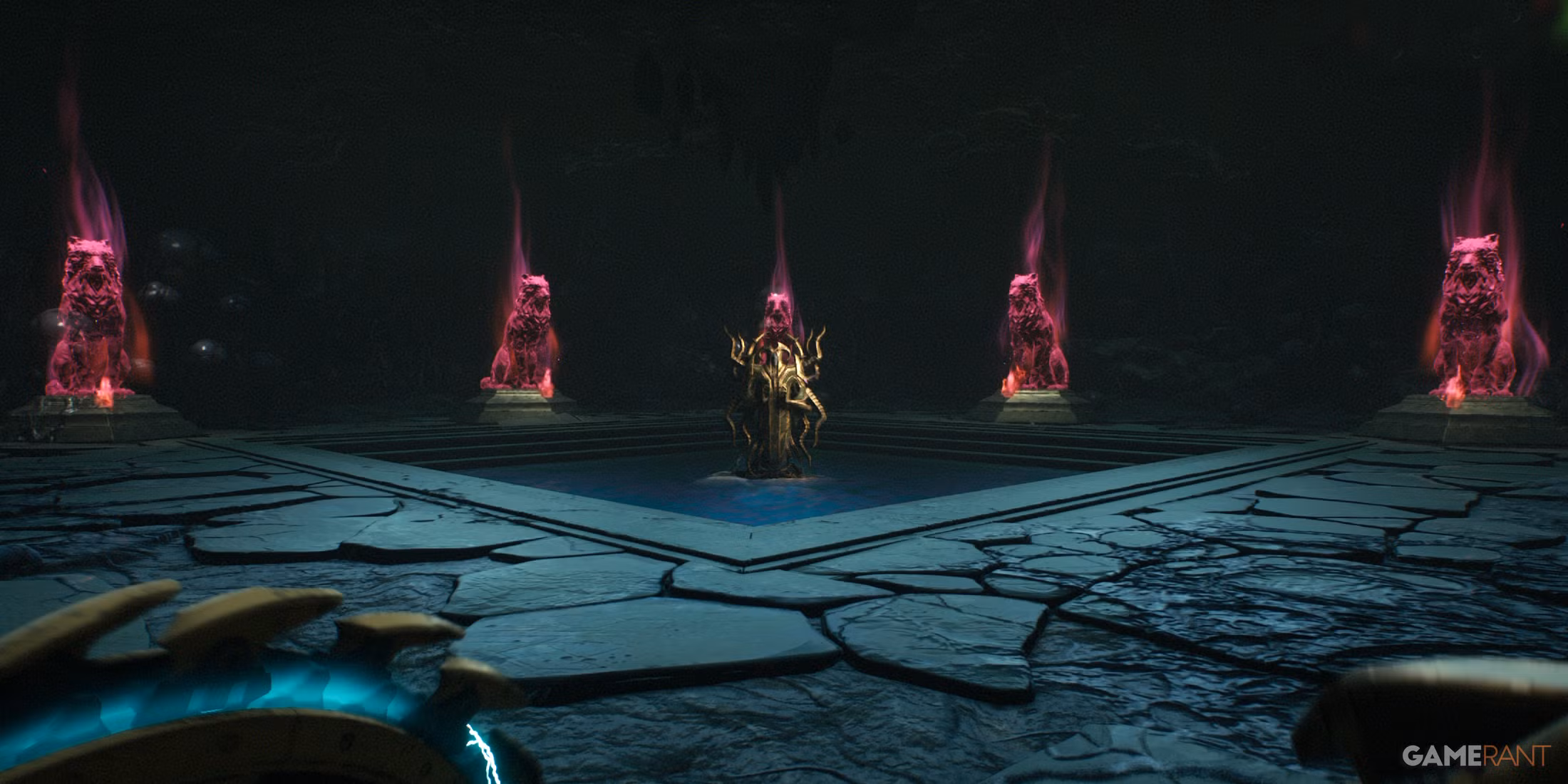 Αφού βρουν το πέμπτο και τελευταίο άγαλμα λύκου του Κεφαλαίου 16, οι παίκτες θα πρέπει να επιστρέψουν στην περιοχή κάτω από το κέντρο του χάρτη, όπου θα διαπιστώσουν ότι το ροζ πεδίο δύναμης έχει εξαφανιστεί. Αυτό σημαίνει ότι μπορούν να πάρουν το Wraithstone του αγάλματος, το οποίο μπορούν να χρησιμοποιήσουν για να ξεκλειδώσουν την τελευταία αναβάθμιση για ένα από τα όπλα του Slayer.