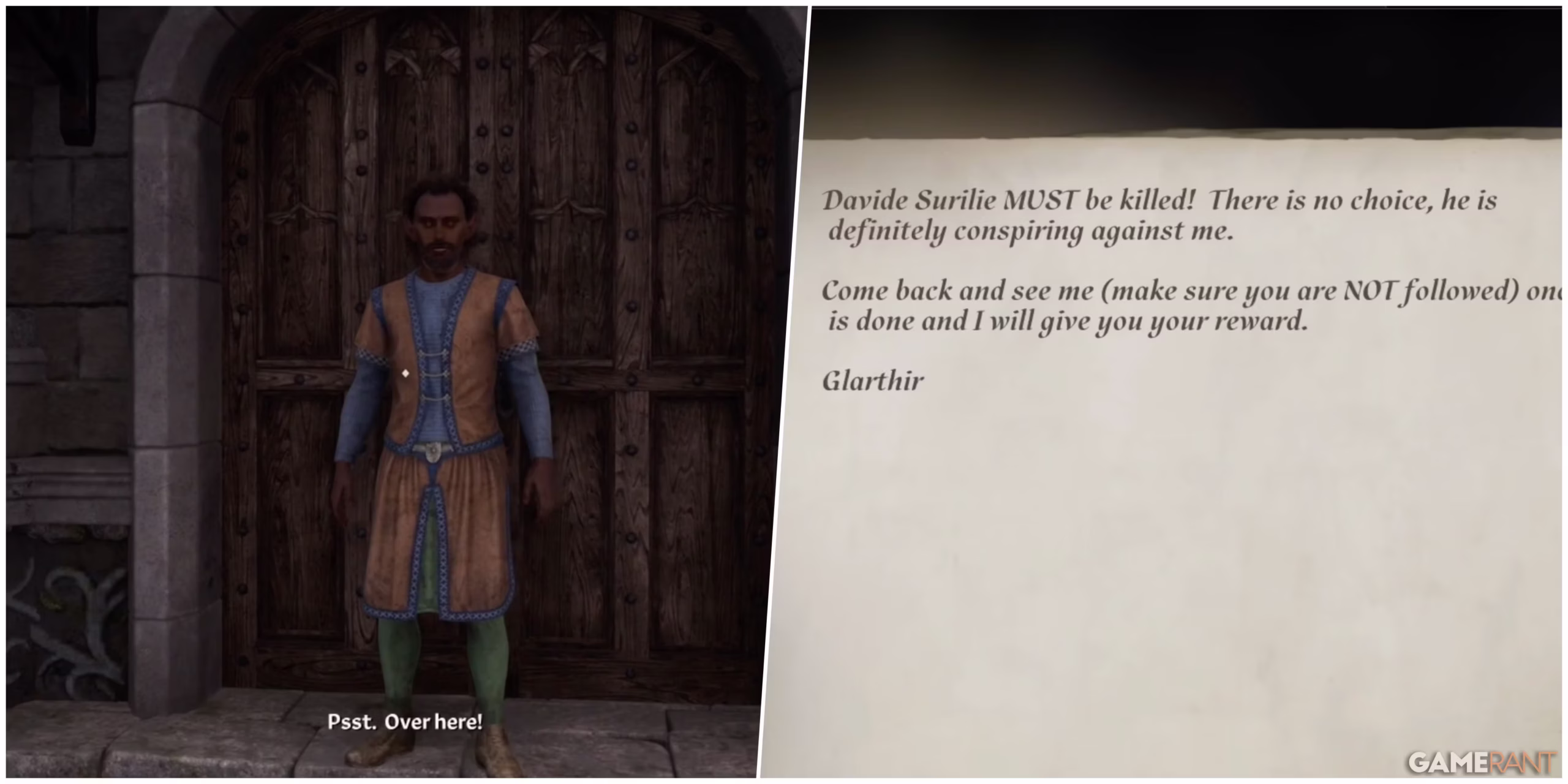 Αφού ολοκληρώσετε την αποστολή ακολουθώντας τον Davide Surilie, επιστρέψτε στο σημείο συνάντησης πίσω από τον Ναό τα μεσάνυχτα. Υπάρχει μια σημαντική επιλογή που πρέπει να κάνετε αν έχετε πει στον Glarthir την αλήθεια για τους πρώτους δύο υπόπτους.