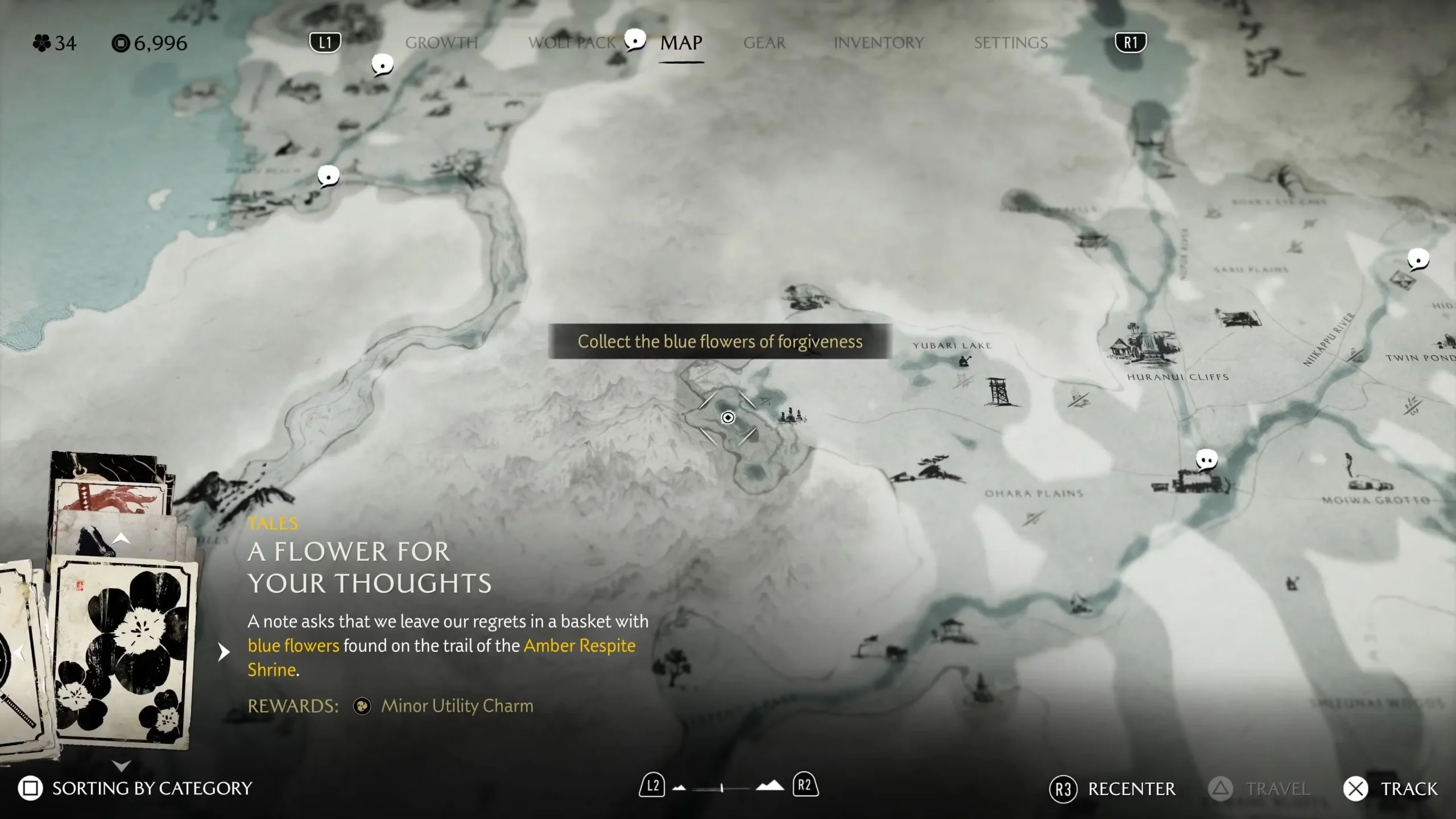Αντί να εμφανίζονται οι αποστολές ως λίστα στο μενού, το Yōtei τις παρουσιάζει με σύστημα καρτών στην οθόνη του χάρτη. Μπορείτε να περιηγηθείτε σε διάφορες κατηγορίες αποστολών και να τις παρακολουθείτε άμεσα, κάτι που γίνεται πολύ χρήσιμο όταν εξοικειωθείτε με το σύστημα. Δεν είστε σίγουροι τι να κάνετε πρώτο; Δώστε προσοχή στο κάτω μέρος κάθε κάρτας, όπου αναγράφεται η ανταμοιβή — είτε πρόκειται για νέο throwable είτε για κάποιο charm.