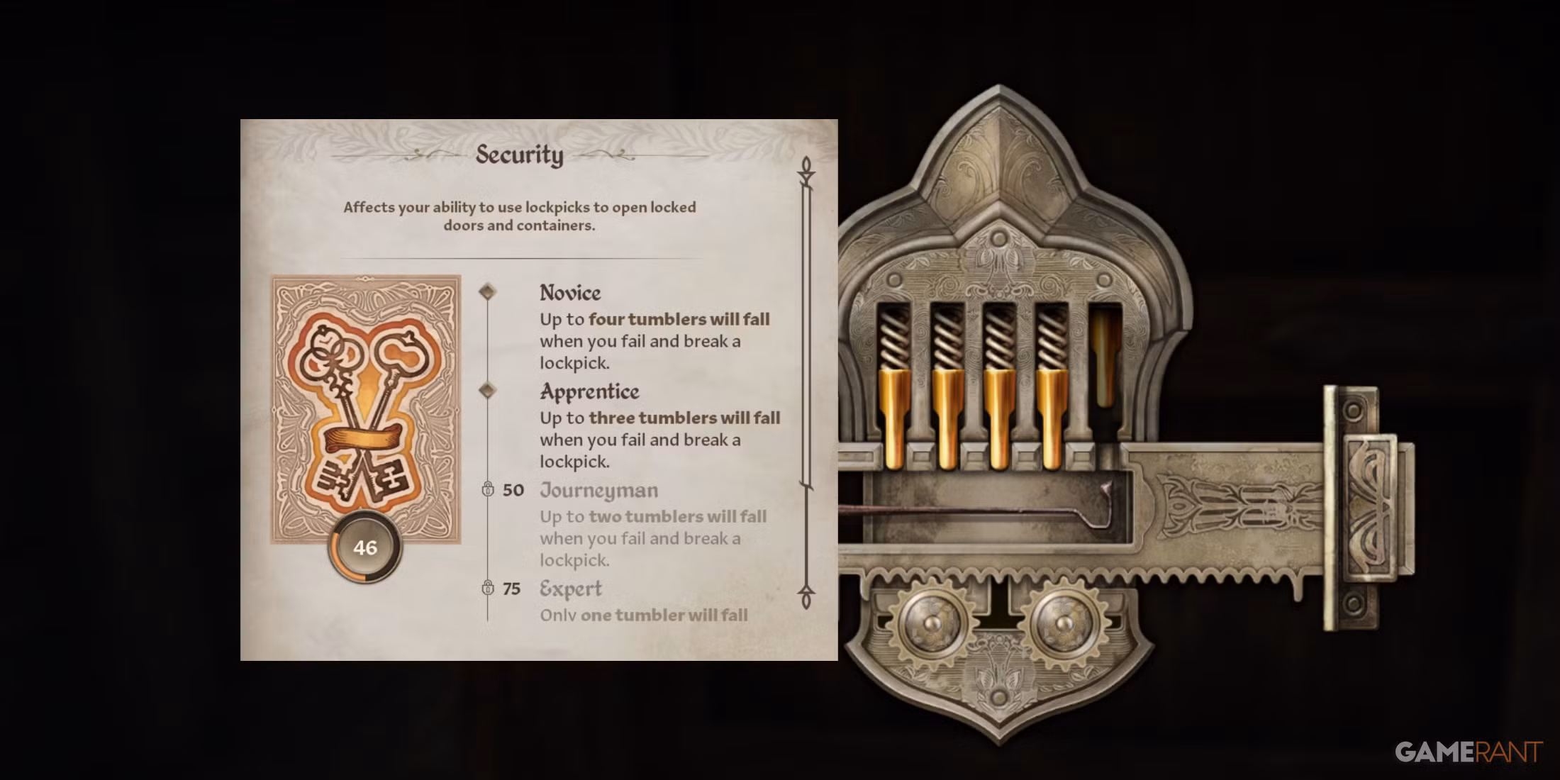 Υπάρχουν μερικοί τρόποι για να αυξήσετε την Ασφαλεία στο Oblivion Remastered, αλλά ο κύριος τρόπος είναι η τοποθέτηση κλειδαρόπικων κατά την προσπάθεια ανοίγματος. Ενδιαφέρον είναι ότι δεν χρειάζεται να ανοίξει ολόκληρη η κλειδαριά για να αποκτήσετε XP Ασφαλείας.