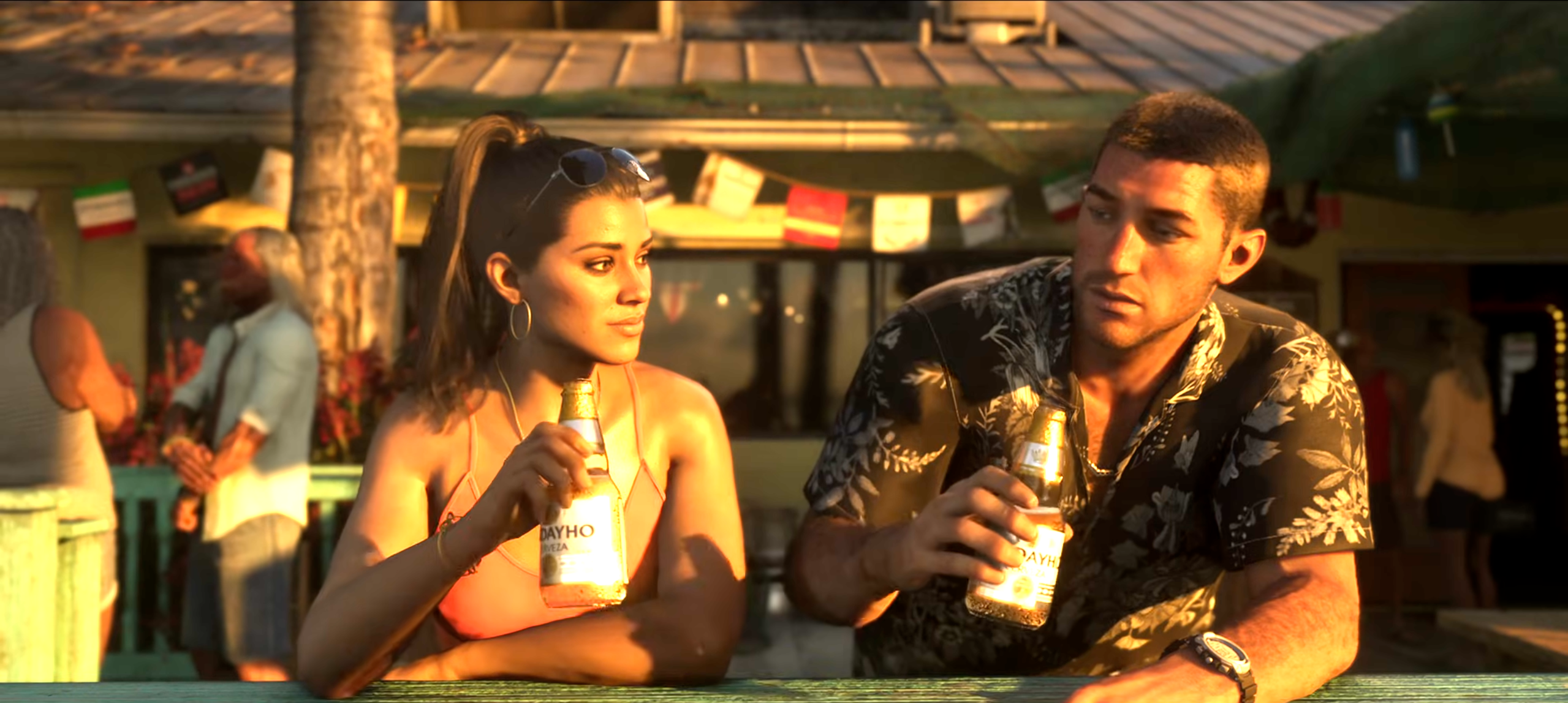 Το κινηματογραφικό τρέιλερ ξεκινά με μια χαρακτηριστική σκηνή του GTA: ένας γοητευτικός άντρας με απίστευτους κοιλιακούς κάνει χειρωνακτική εργασία σε μια πολιτεία που θυμίζει Φλόριντα, ενώ ακούει ωραία μουσική της δεκαετίας του ’80 στο ραδιόφωνο. Δείχνει με επιδεξιότητα τις βασικές πτυχές της πλοκής: ο πρωταγωνιστής παραλαμβάνει τη γυναίκα του από τη φυλακή και στη συνέχεια επιστρέφουν στη ζωή του εγκλήματος. Φαίνεται ότι οι κύριοι χαρακτήρες, η Λουσία και ο Τζέισον, θα έχουν στιγμές επιτυχίας, αλλά κάποιες σκηνές δείχνουν επίσης τη Λουσία σε γιλέκο κατασκευών, να πέφτει στον καναπέ με τον Τζέισον μετά από μια μακρά ημέρα κοινωνικής υπηρεσίας. Ό,τι και αν κάνουν, η χημεία αυτού του εντελώς κινούμενου ζευγαριού είναι αισθητή — και αυτό είναι εντυπωσιακό για ένα κινηματογραφικό τρέιλερ βιντεοπαιχνιδιού.
