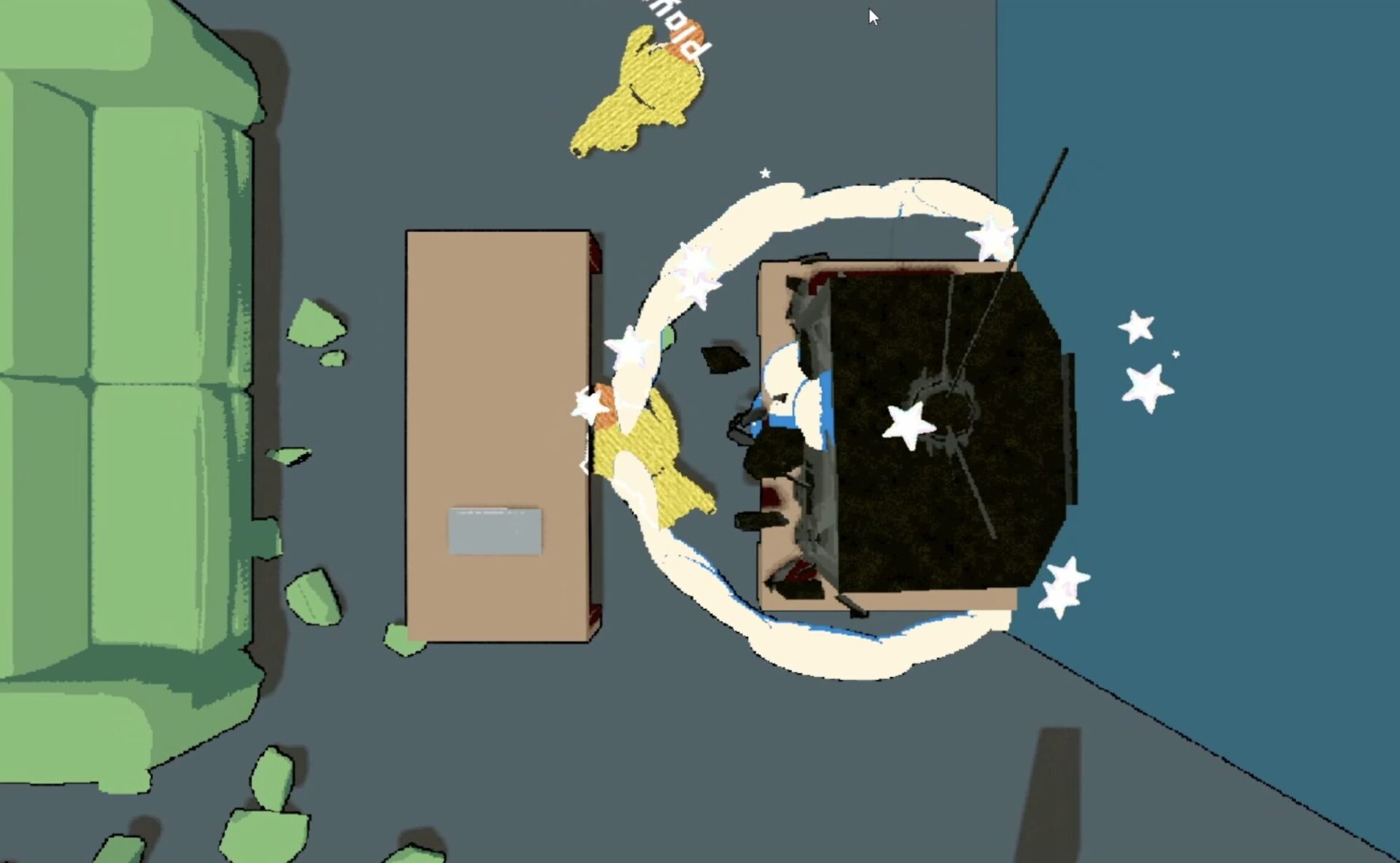 Εσείς και ο συνεργάτης σας έχετε μια λίστα με πράγματα που πρέπει να καταστρέψετε πριν επιστρέψουν οι γονείς σας. Για να το κάνετε αυτό, πρέπει να crawl over και να τα χτυπήσετε σε κομμάτια. Τα αντικείμενα που πρέπει να σπάσετε αλλάζουν κάθε φορά, οπότε μην αρχίσετε να καταστρέφετε τυχαία ή δεν θα προλάβετε να τα σπάσετε όλα. Πρέπει επίσης να προσέχετε τη babysitter, καθώς είναι πάντα σε επιφυλακή και θα έρθει τρέχοντας αν σας ακούσει να κουνάτε το ψυγείο. Πρέπει να χτυπήσετε γρήγορα και δυνατά (ή να εναλλάσσεστε για να τραβήξετε την προσοχή της babysitter σε διάφορα μέρη του σπιτιού) αν θέλετε να αποφύγετε τη σύλληψη. Ευτυχώς, ο ελεύθερος δίδυμος μπορεί να απελευθερώσει τον συλληφθέντα από την κούνια του αν είναι προσεκτικός. Χάνετε μόνο αν σας πιάσουν και τους δύο και σας στείλουν για ύπνο.