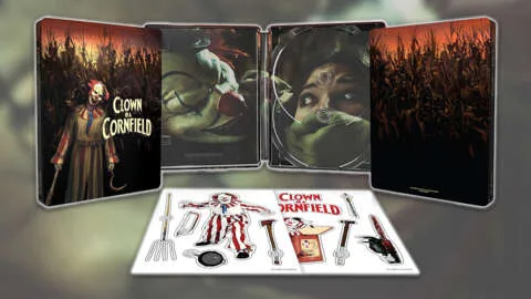 Κυκλοφόρησε στους κινηματογράφους στις 9 Μαΐου, το Clown in a Cornfield σημείωσε μεγάλη επιτυχία για την IFC. Με έσοδα σχεδόν 4 εκατομμυρίων δολαρίων⇾, κατέρριψε το ρεκόρ πρώτου σαββατοκύριακου της εταιρείας παραγωγής, ξεπερνώντας το προηγούμενο θρίλερ της, Late Night with the Devil. Παρά την επιτυχία σε συγκεκριμένο κοινό, είναι πιθανό πολλοί φίλοι των ταινιών τρόμου να έχασαν την περιορισμένη προβολή της ταινίας στους κινηματογράφους. Ευτυχώς, για όσους δεν πρόλαβαν ή θέλουν να ξαναδούν την ταινία, έχουν ήδη ξεκινήσει οι προπαραγγελίες για την επερχόμενη κυκλοφορία του Clown in a Cornfield σε Blu-ray. Διατίθενται διάφορες εκδόσεις, συμπεριλαμβανομένης της premium 4K Steelbook Edition Blu-ray, αν και η ακριβής ημερομηνία κυκλοφορίας δεν έχει ανακοινωθεί ακόμα. Ωστόσο, με την προπαραγγελία εξασφαλίζετε την τιμή προπαραγγελίας του Amazon και η χρέωση θα γίνει μόνο όταν αποσταλεί η παραγγελία σας.