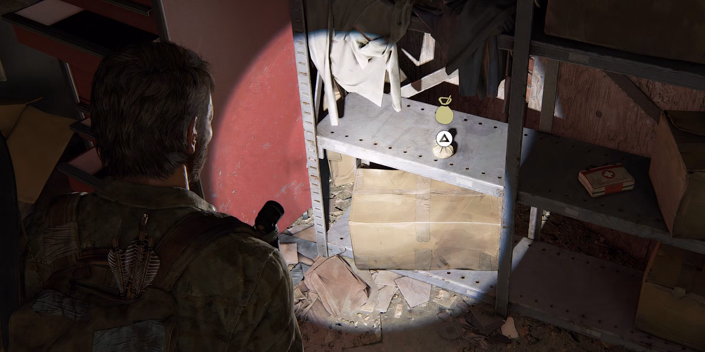 Το The Last of Us διαθέτει καινοτόμα και αυτοσχέδια κιτ για τους χαρακτήρες του. Για παράδειγμα, χάρη στον Bill και την παγιδευμένη πόλη του στο Lincoln, Massachusetts, οι παίκτες γνωρίζουν τις βόμβες με καρφιά. Παράλληλα, οι παίκτες μαθαίνουν να είναι προσεκτικοί με το περιβάλλον τους και να μην ενεργοποιούν νήματα με τούβλα και μπουκάλια που είναι διάσπαρτα παντού και μπορούν να ρίξουν για να τα πυροδοτήσουν και να τα καθαρίσουν. Αυτό δεν είναι η ιδανική χρήση ενός τούβλου ή μπουκαλιού. Το επαναληπτικό όπλο του Joel και το τόξο της Ellie είναι εμβληματικά όπλα στο The Last of Us, αλλά είναι αμφίβολο ότι τα τούβλα και τα μπουκάλια δεν είναι πιο σημαντικά στοιχεία της σειράς.