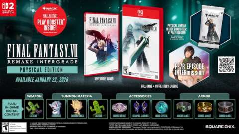 Το Final Fantasy 7 Remake Intergrade θα κυκλοφορήσει στις 22 Ιανουαρίου 2026 για το Nintendo Switch 2, με τιμή που θεωρείται αρκετά προσιτή. Το παιχνίδι είναι ήδη διαθέσιμο για προπαραγγελία για το Nintendo Switch 2 στα Amazon και Best Buy, με τιμή $40⇾. Η κυκλοφορία θα γίνει ταυτόχρονα και για Xbox Series X|S, αλλά η Square Enix θα διαθέσει μόνο φυσική έκδοση για το Switch 2. Αυτή η έκδοση περιλαμβάνει διάφορα μπόνους εντός παιχνιδιού και ένα Magic: The Gathering Final Fantasy Play Booster Pack.