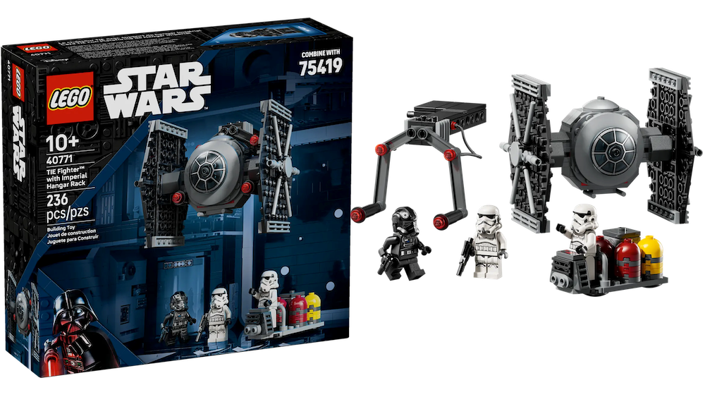 Το TIE Fighter μπορεί να τοποθετηθεί στον τοίχο του hangar του Death Star. Το σετ των 236 κομματιών περιλαμβάνει επίσης ένα service cart και τρεις φιγούρες: δύο Stormtroopers και έναν TIE Pilot. Το δώρο διατίθεται μόνο με αγορά του UCS Death Star από 1 έως 7 Οκτωβρίου.