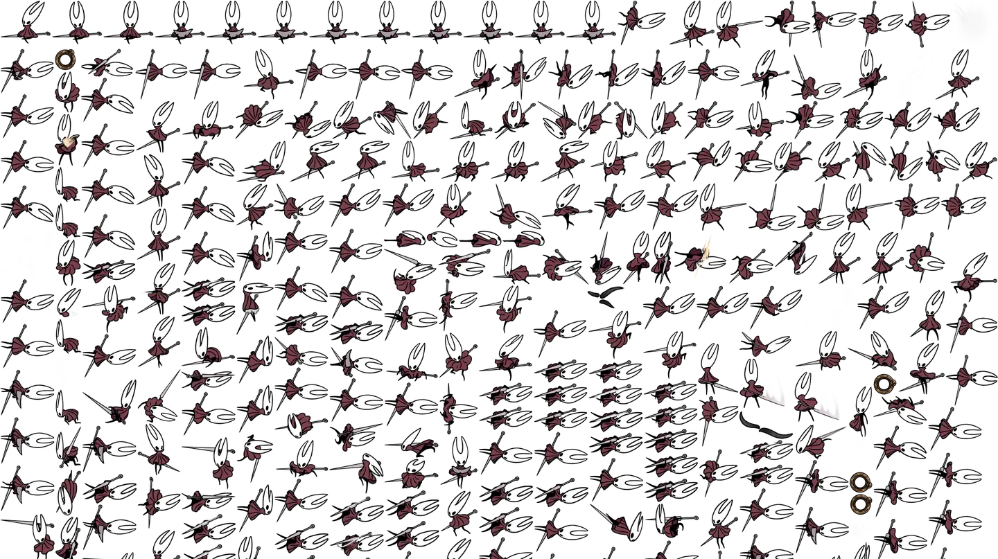Έχουν επίσης μοιραστεί το παραπάνω φύλλο με τις εκατοντάδες κινήσεις sprite. Είμαι σίγουρος ότι το σώμα μου δεν μπορεί να αντέξει τόσα πολλά sprites. Ρισκάρω να βγάλω το ισχίο μου αν ξεπεράσω τα 30. Αναρωτιέμαι πόσοι παίκτες του Hollow Knight κλείνουν ήδη αεροπορικά εισιτήρια. Ίσως ο μυστικός σκοπός εδώ είναι να φέρει περισσότερους gamers στα μουσεία;