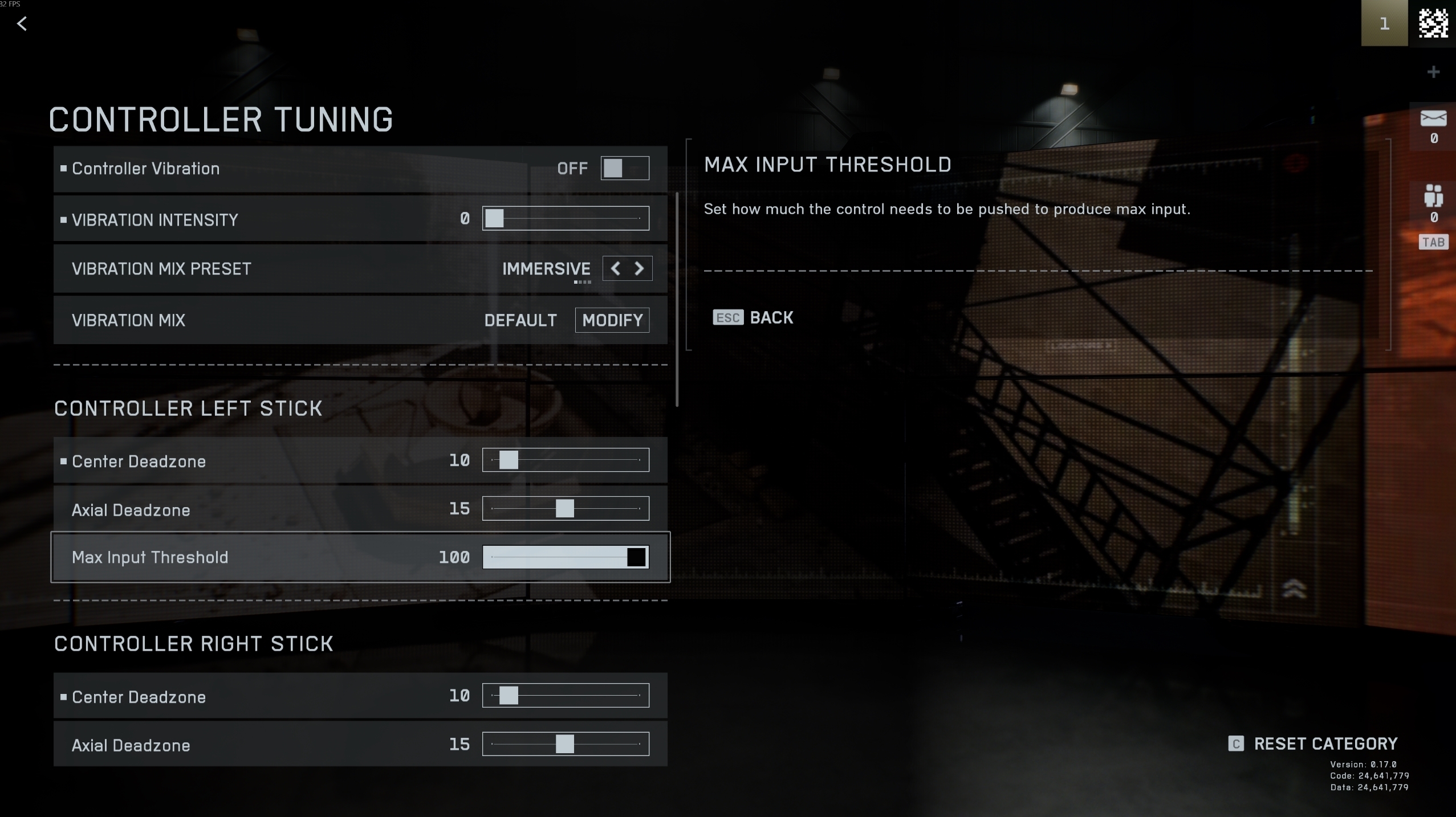 - Right Stick Max Input Threshold: 100