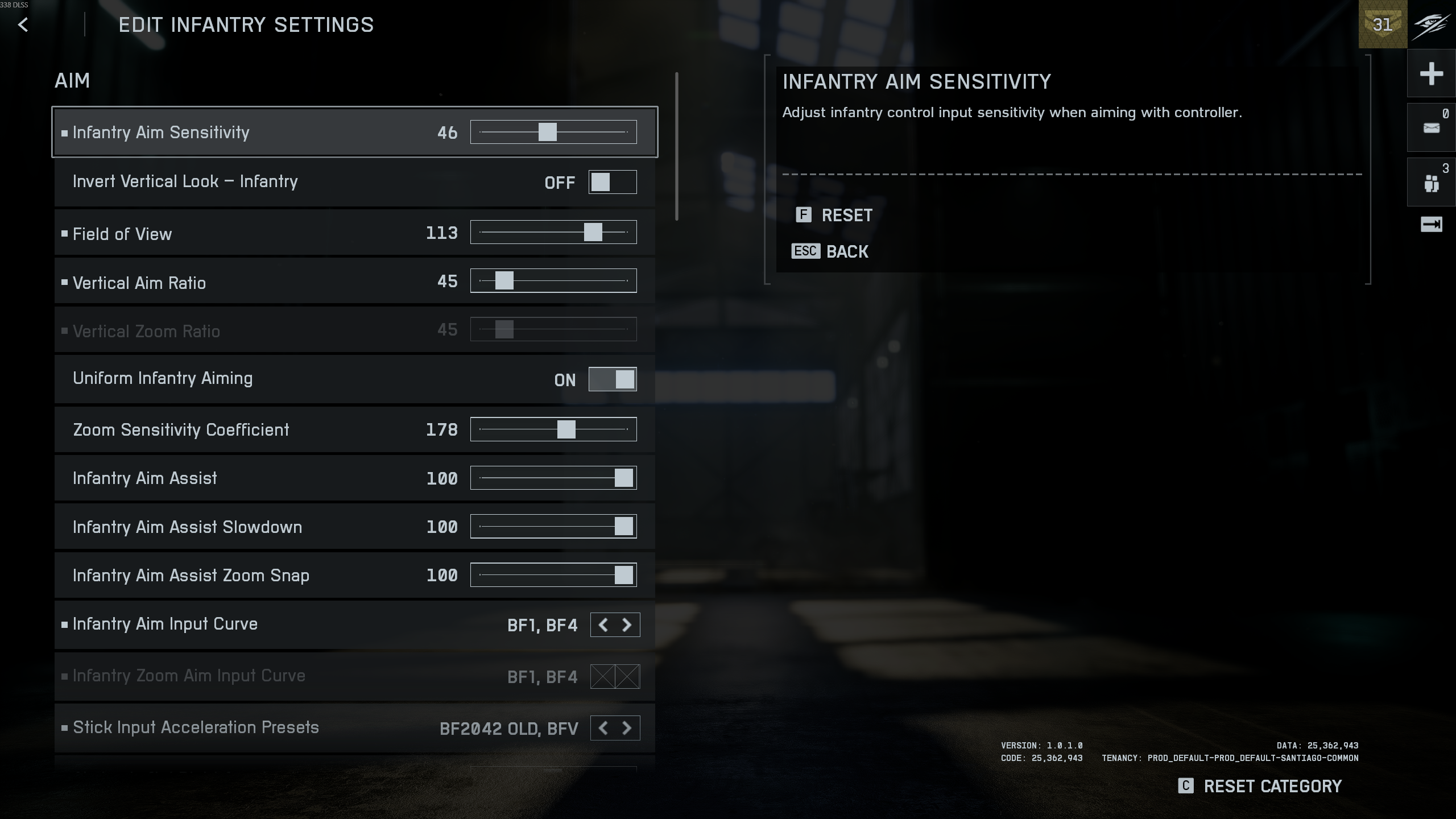 - Infantry Zoom Aim Input Curve: BF1, BF4