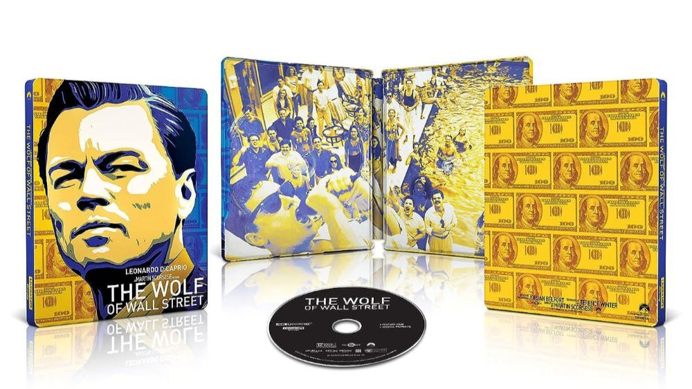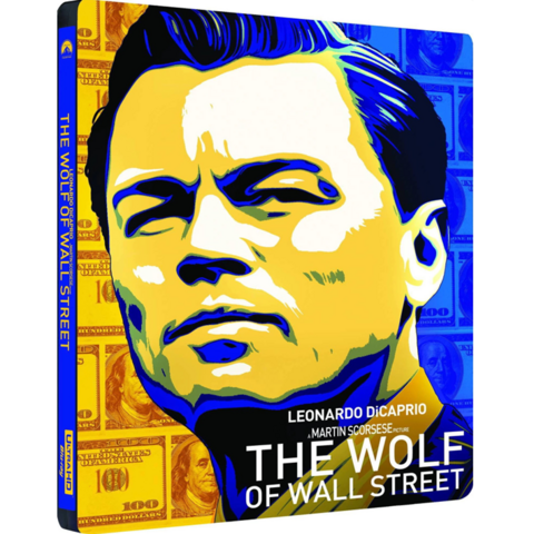 Αυτή η έκδοση του The Wolf of Wall Street περιλαμβάνει τόσο το 4K Blu-ray όσο και ψηφιακό αντίγραφο της ταινίας, με υποστήριξη Dolby Vision και Dolby Audio. Το κυρίως χαρακτηριστικό είναι το εντυπωσιακό steelbook, με τον Leonardo DiCaprio ως Jordan Belfort στο εξώφυλλο, χρυσά χαρτονομίσματα $100 στο πίσω μέρος και μια καλλιτεχνική μπλε-κίτρινη σύνθεση στο εσωτερικό.
